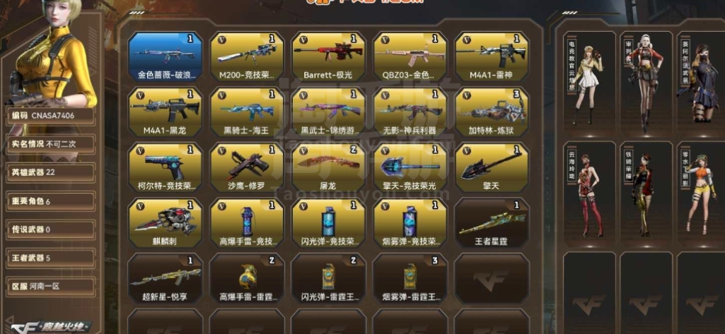 【商品标题】:河北一区-31V-3王者-0炫金 【热门武器】:M200-竞技荣