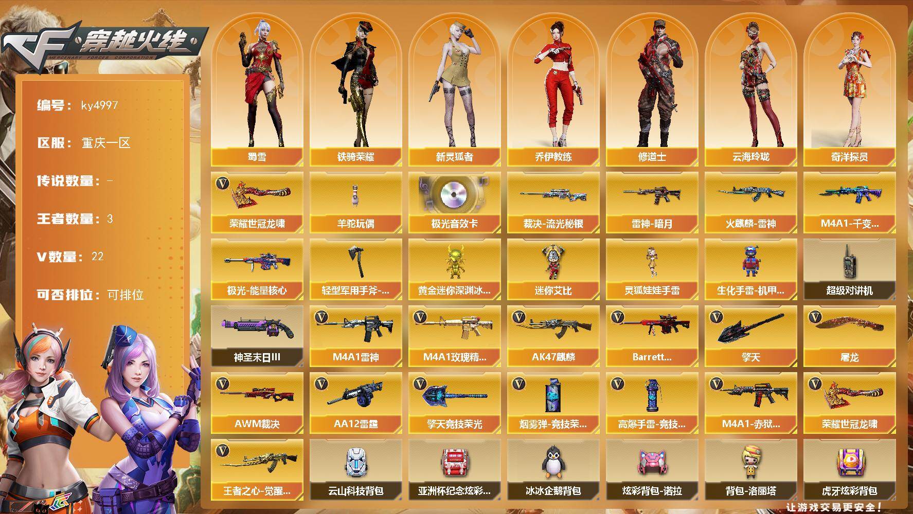 重庆一区-22V-3王者-0炫金【热门武器】:羊驼玩偶,荣耀世冠-龙啸【音