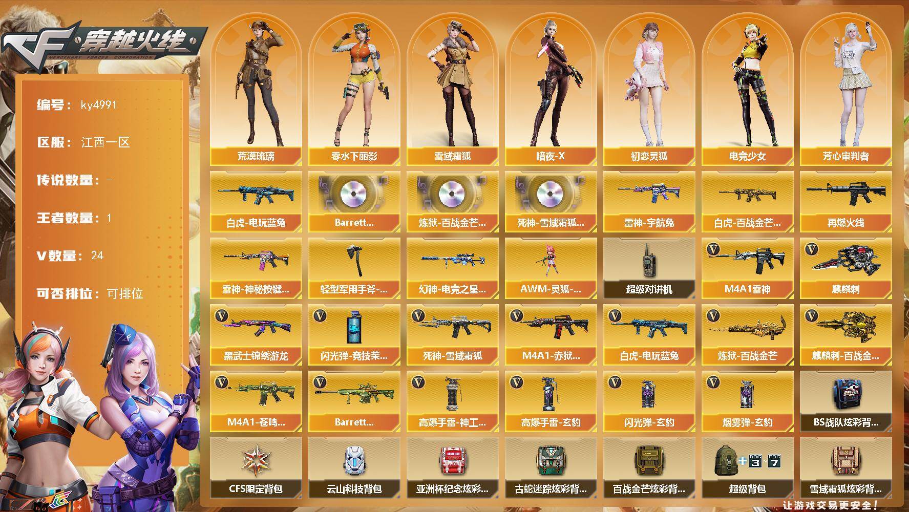 江西一区-52V-1王者-1炫金【热门武器】:QBZ03-金色蔷薇*4,修罗