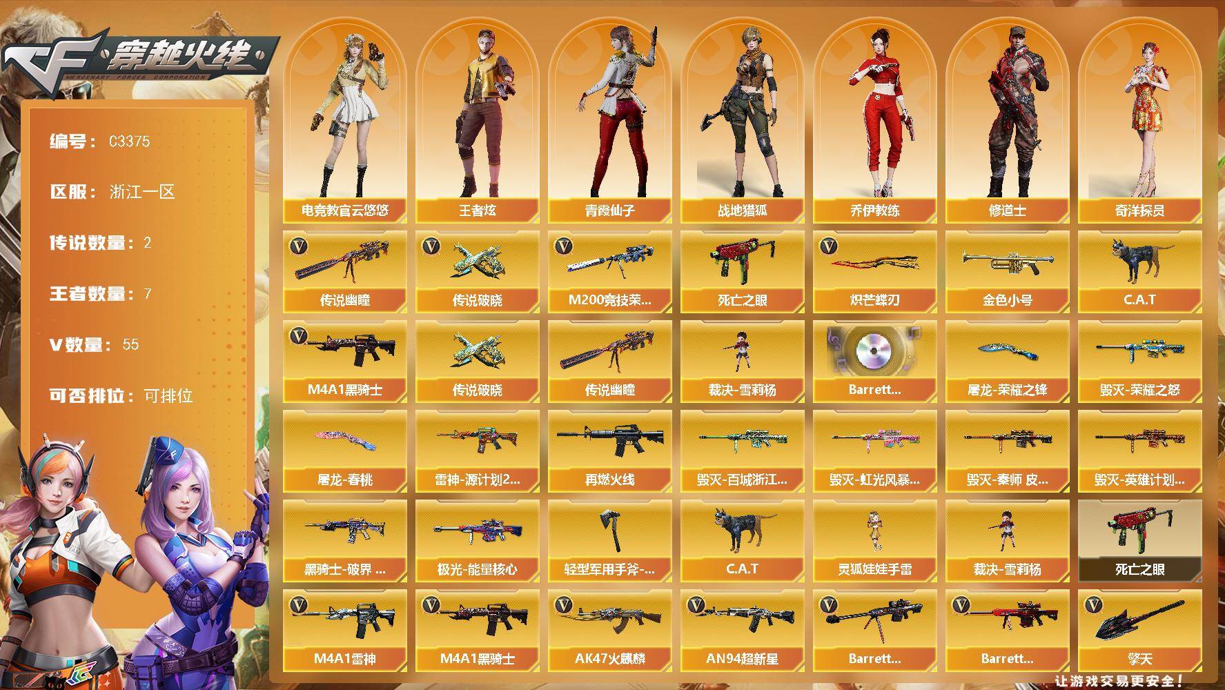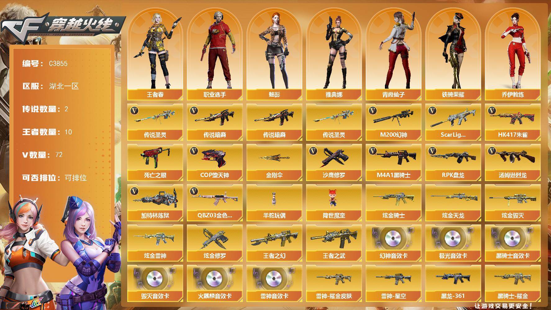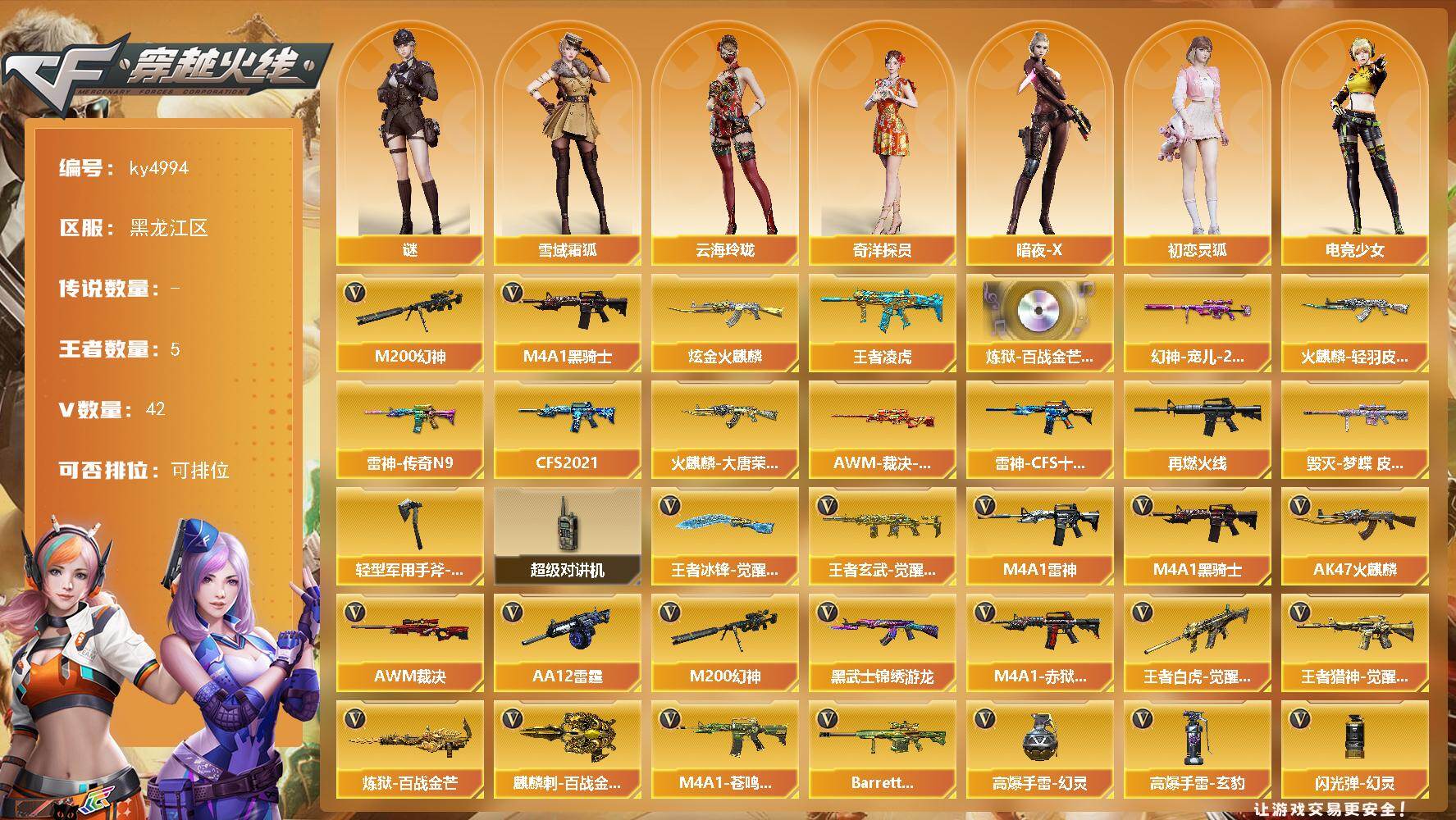 黑龙江区-42V-5王者-1炫金【热门武器】:M200-幻神,M4A1-黑骑