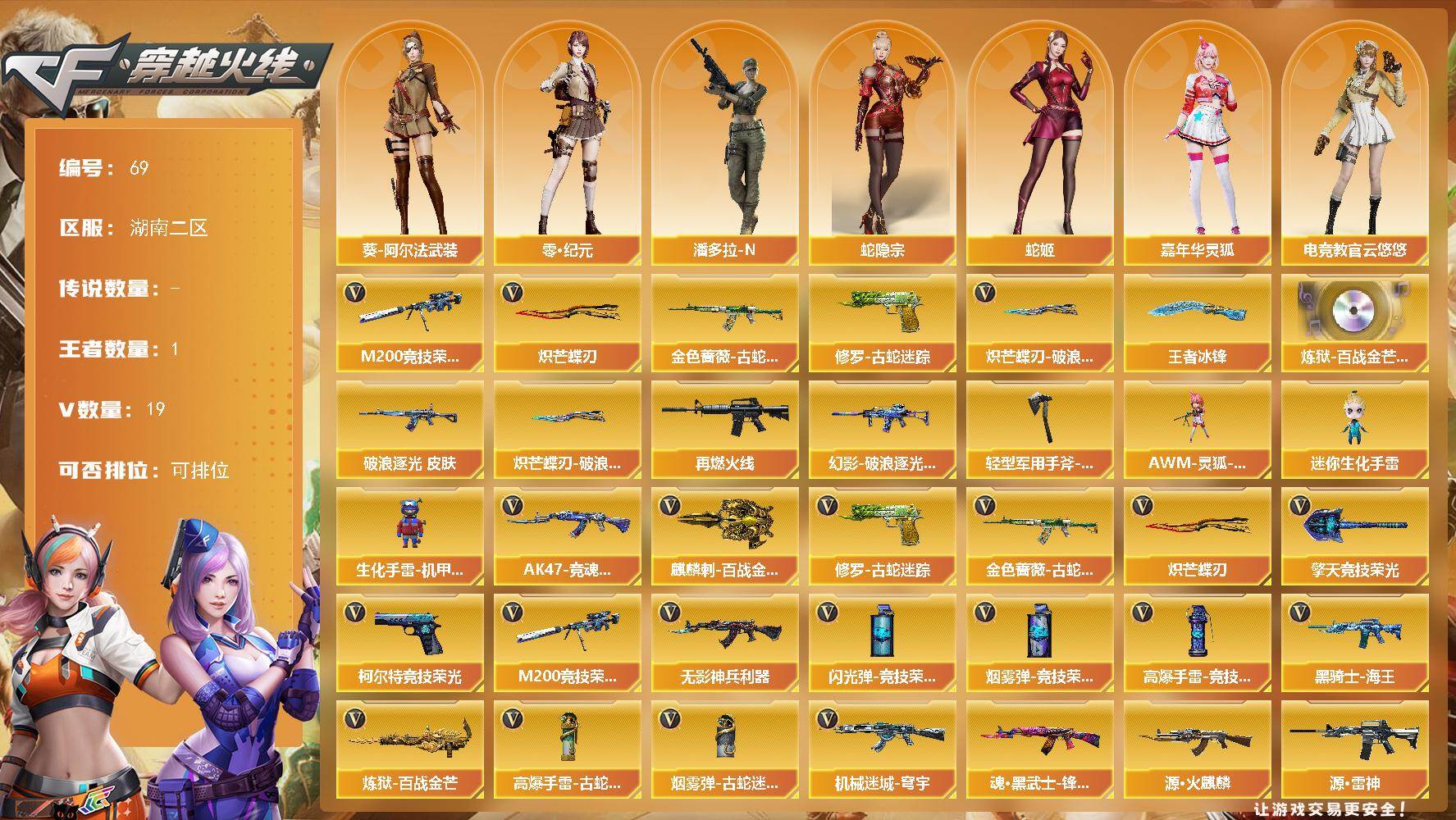 【特价出售·性价比账号·手慢无】湖南二区-18V-1王者武器数-0炫金武器数