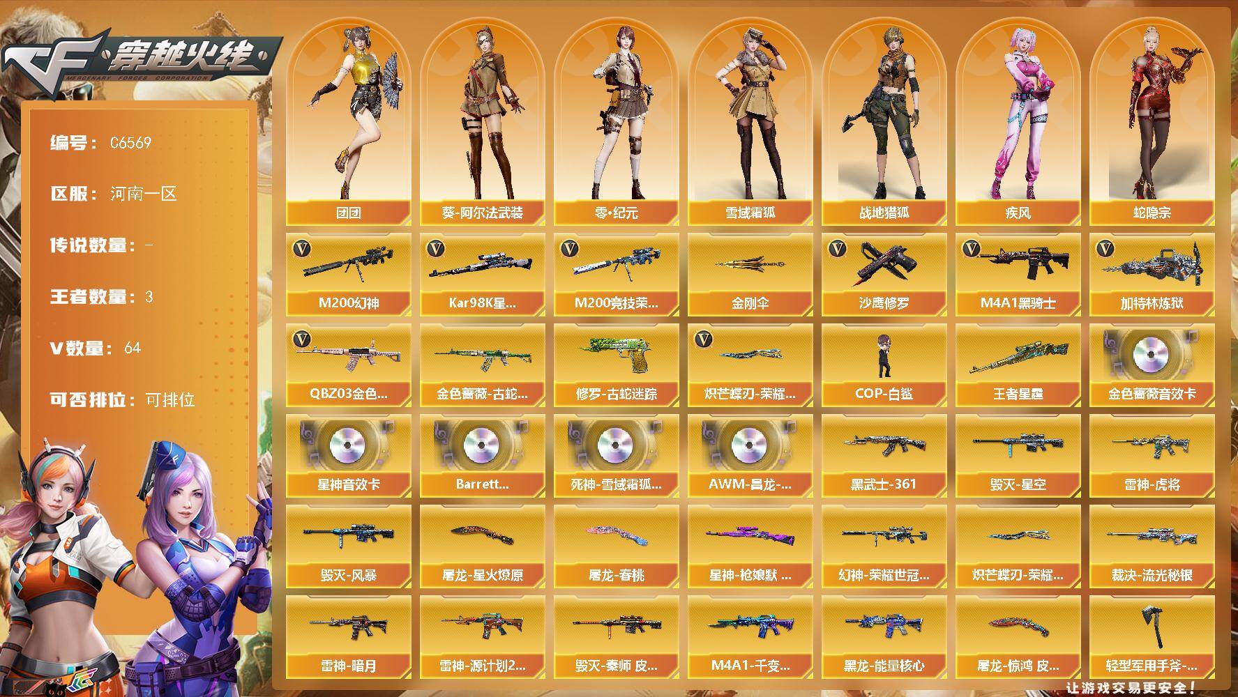 河南一区-60V-3王者武器数-0炫金武器数【热门武器】:Q