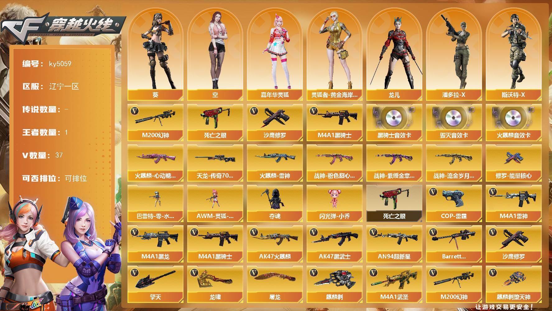 辽宁一区-37V-1王者-0炫金【热门武器】:M200-幻神,死亡之眼,M4