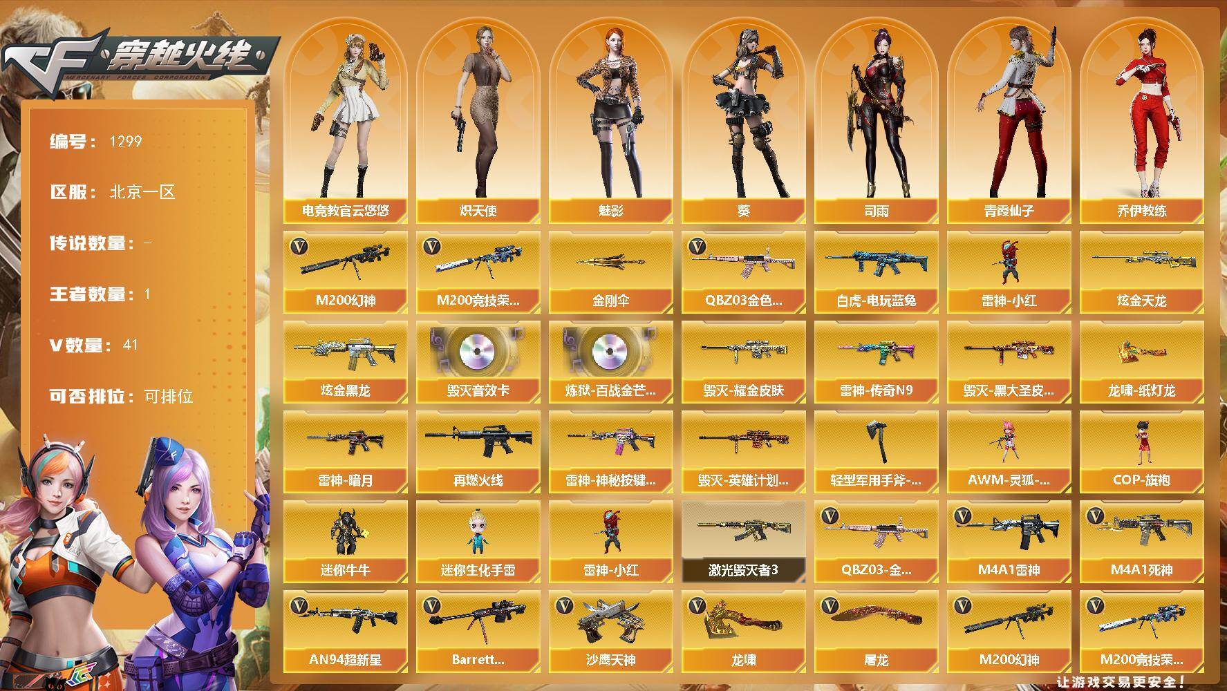 北京一区-41V-1王者-2炫金【热门武器】:QBZ03-金色蔷薇,M200
