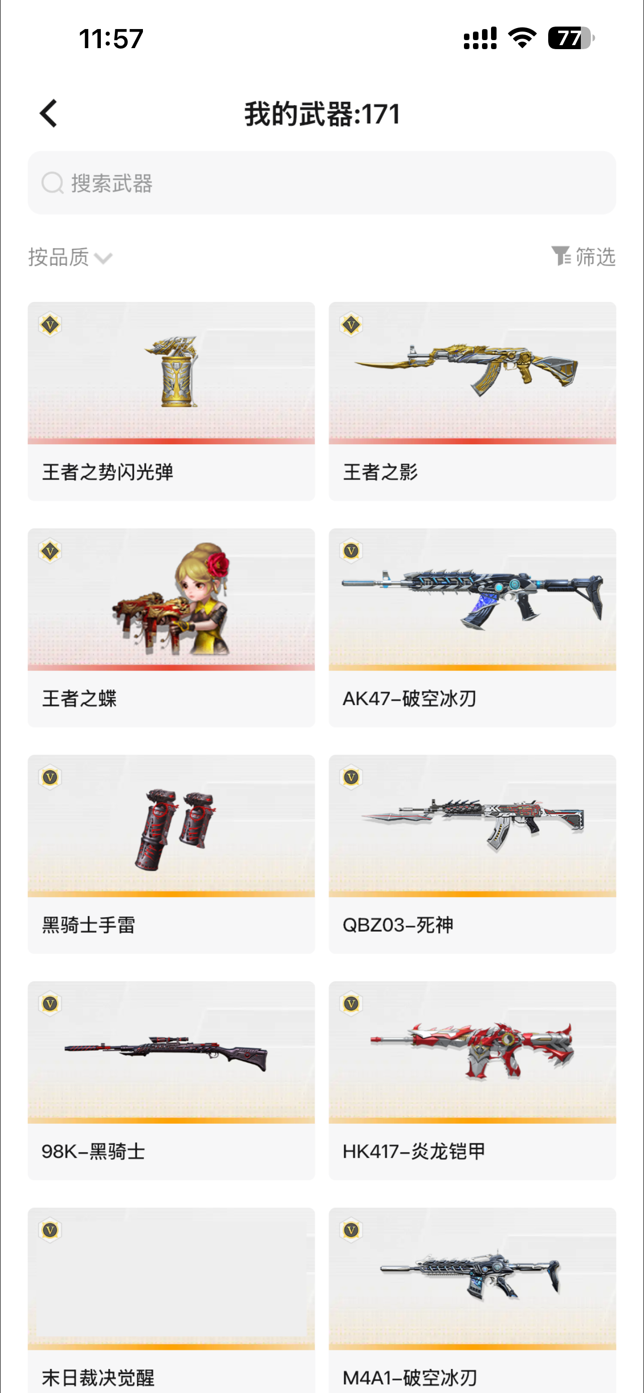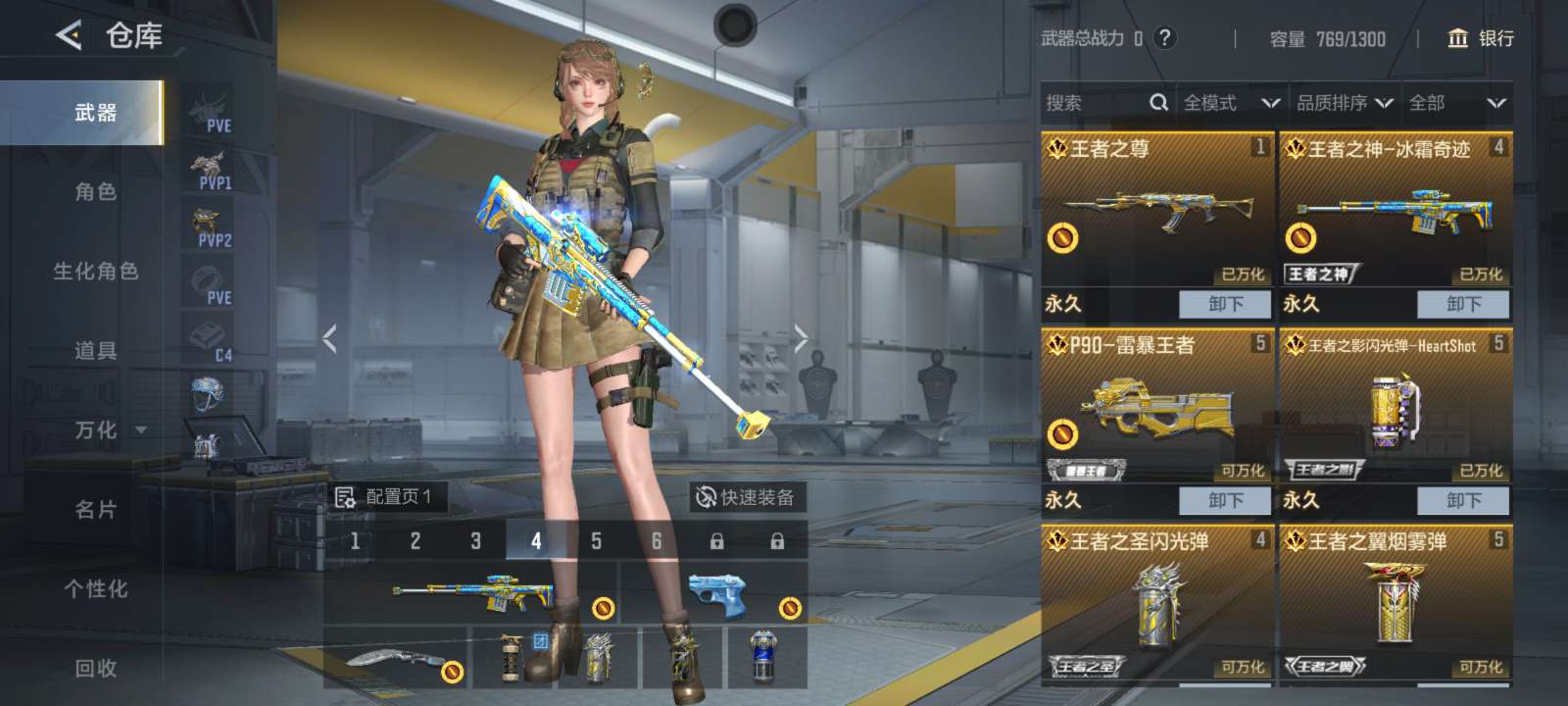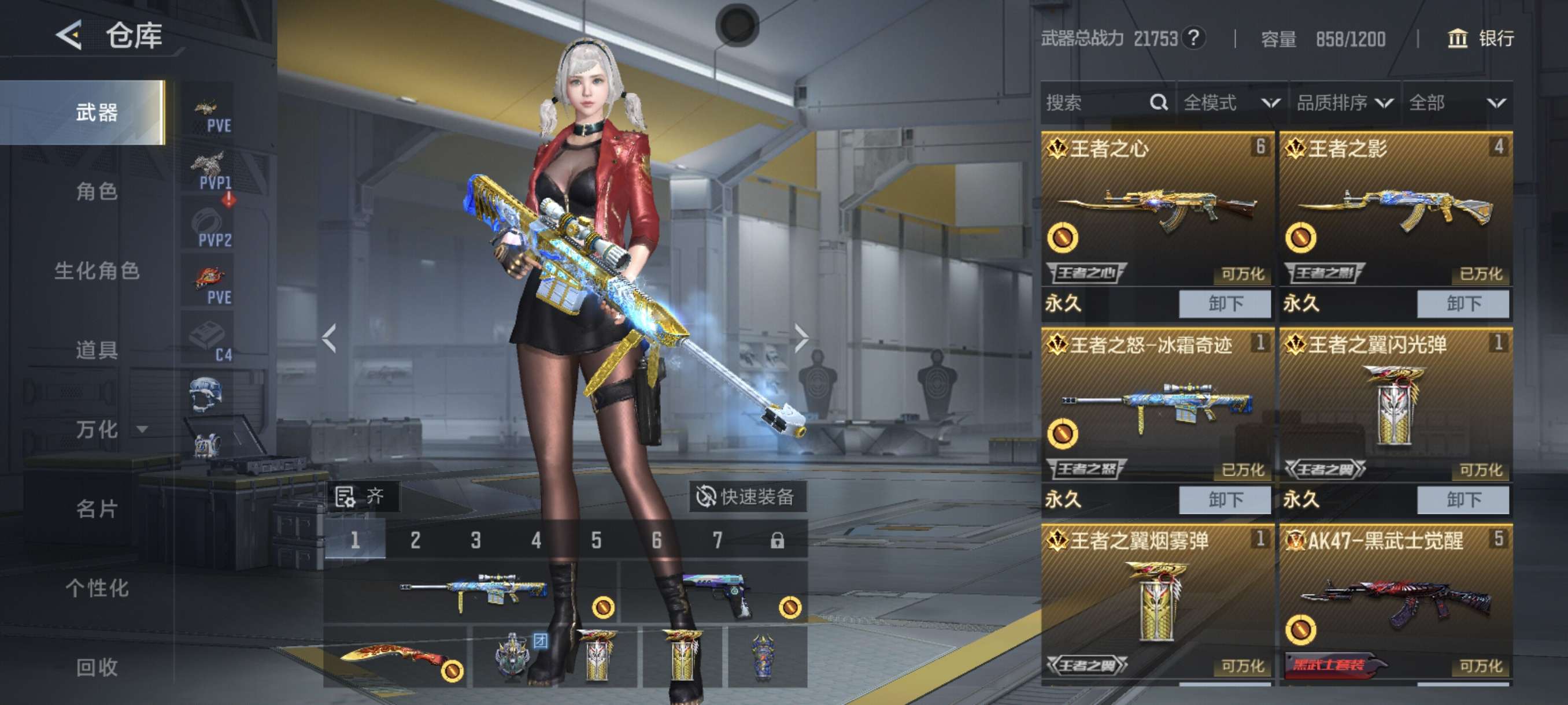 王者武器应有尽有步枪狙t0拉丝皮也很多女团角色
