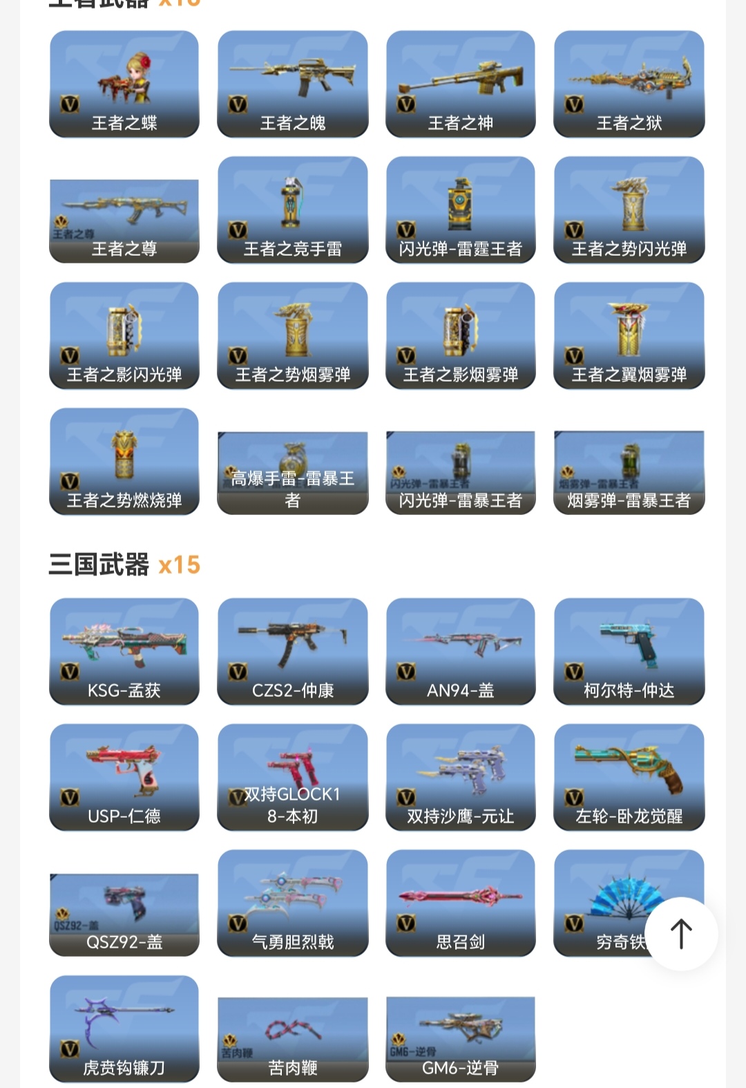 苹果QQ-V6-5王者/王者之影/王者之心/王者之蝶/王者之腾/王者之魂/KSG-孟获/81式-光明之神/MK47-仁德/M4A1-仲达/M200-幻神/AWM-妙才/AWM-游骑兵/81式-阿波罗
