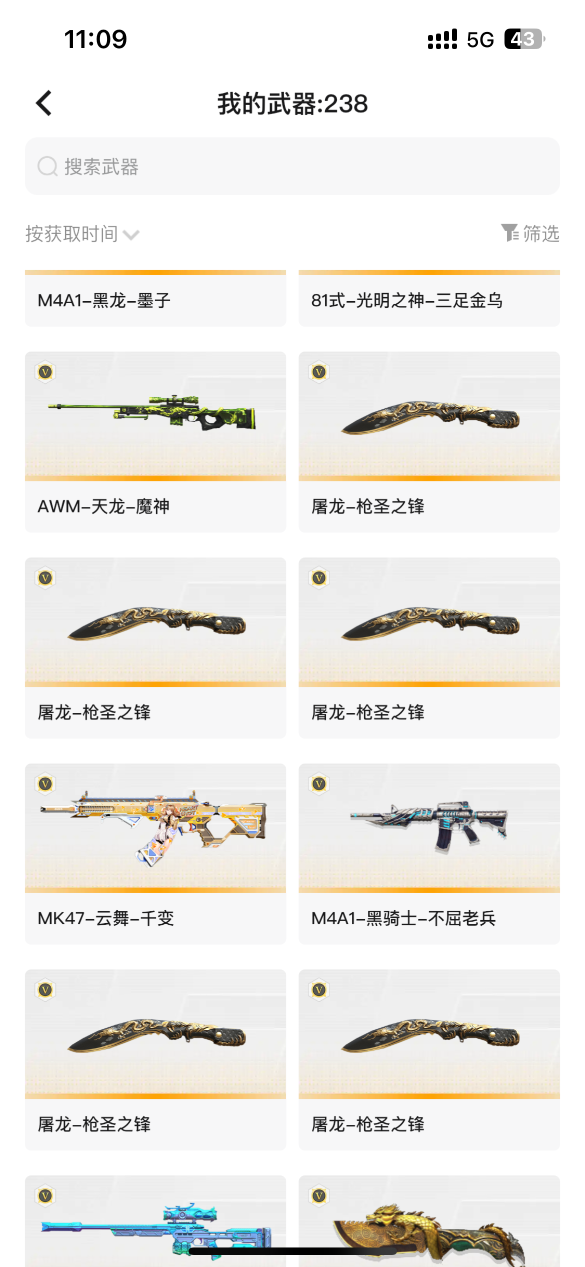 穿越火线苹果QQ区账号很多热门武器皮肤都在。