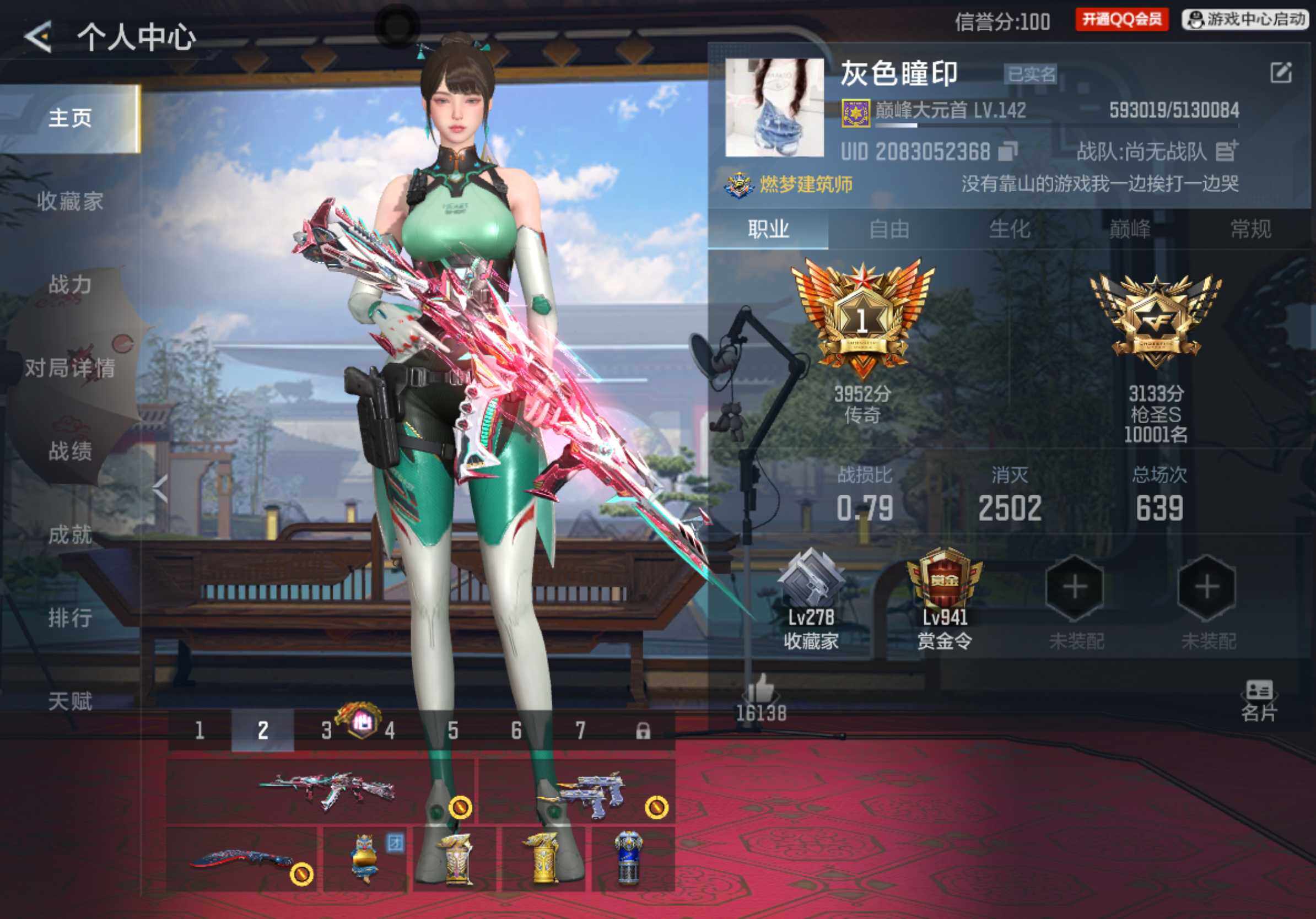 角色等级:167,实名:有修改人脸机会/实名是本人,段位:大师S,VIP等级:V8,V武器数量:292,V角色数量:10,V总数量:292,王者武器数:20,万化数量:575