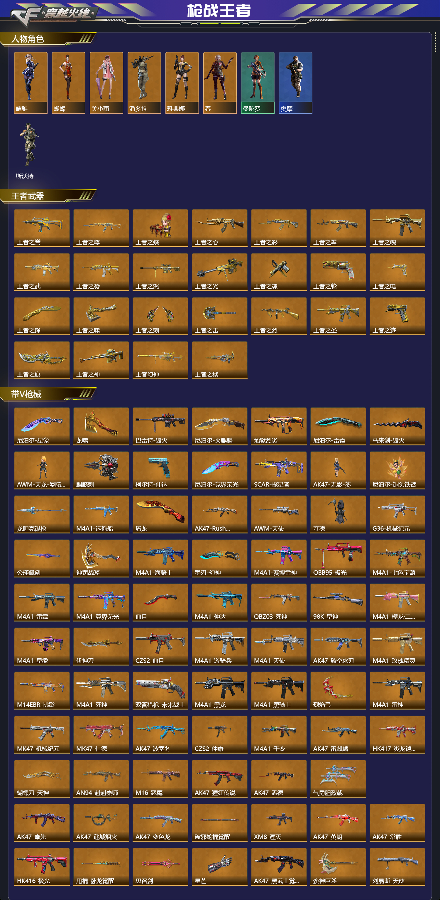 顶级V9,王者葵,7套王者雷,王者幻神,王者之力,超一线武器基本上全部都有,6个背包配置页,详情看图(附带安卓QQ王者v9)