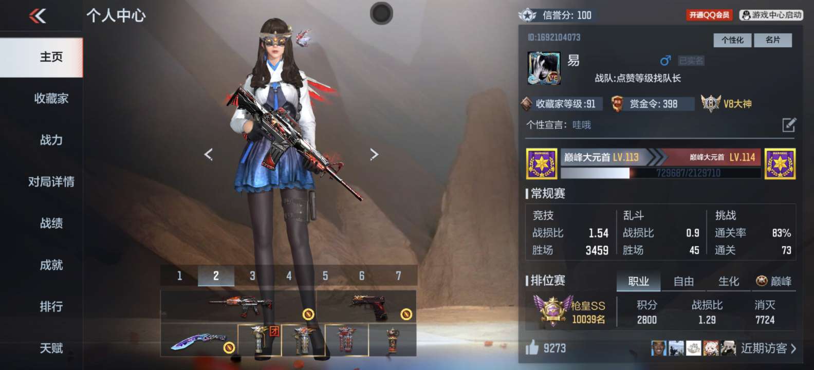 2王者武器160英雄武器信誉分100,288万化枪皇ss收藏家9303
