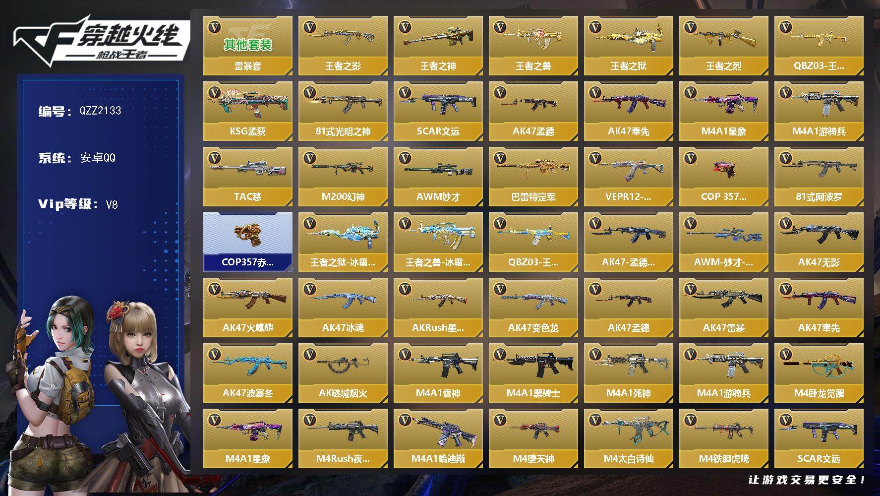 VIP1/39V/王者之盘/M200-幻神/零水下丽影/AK47-沙漠领主/AK47-华夏传说/AK47-木兰