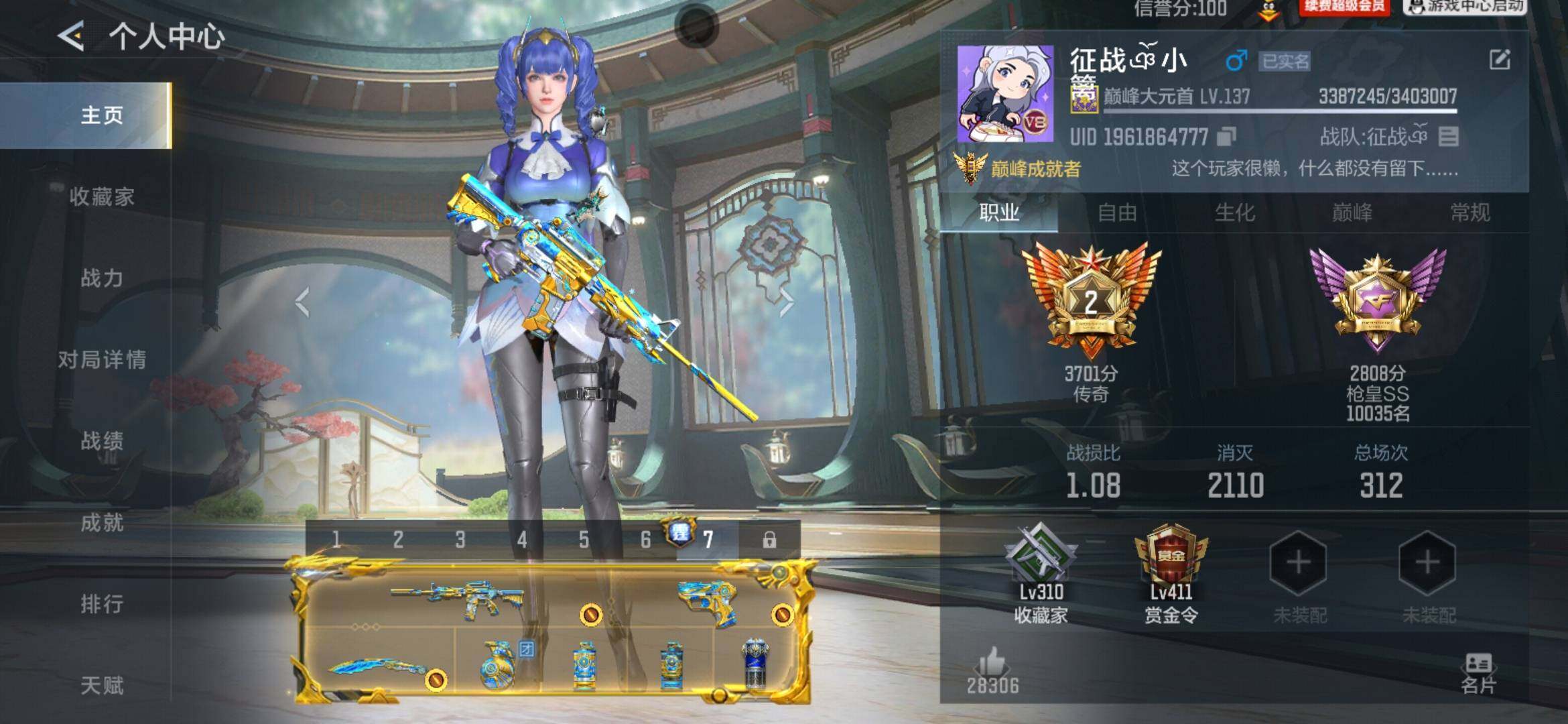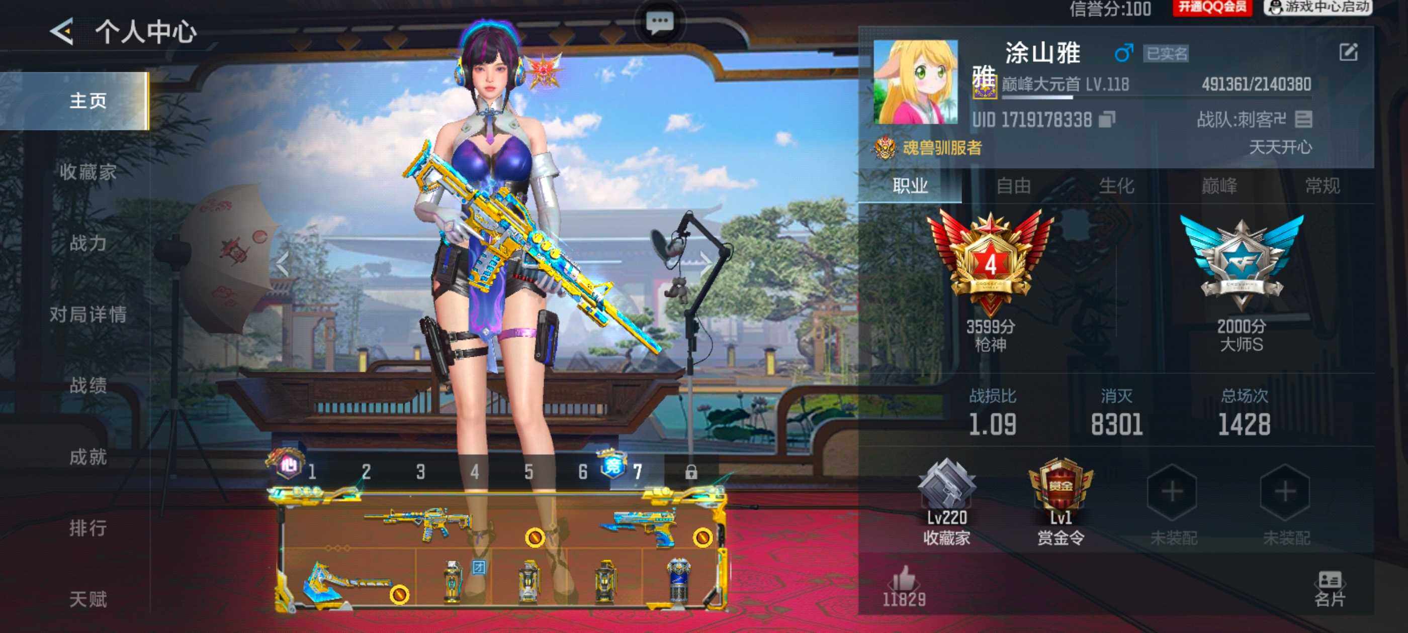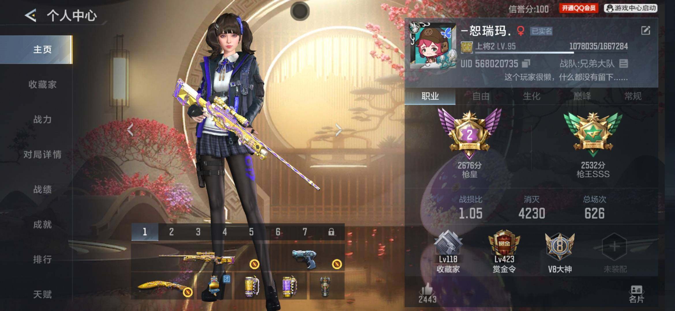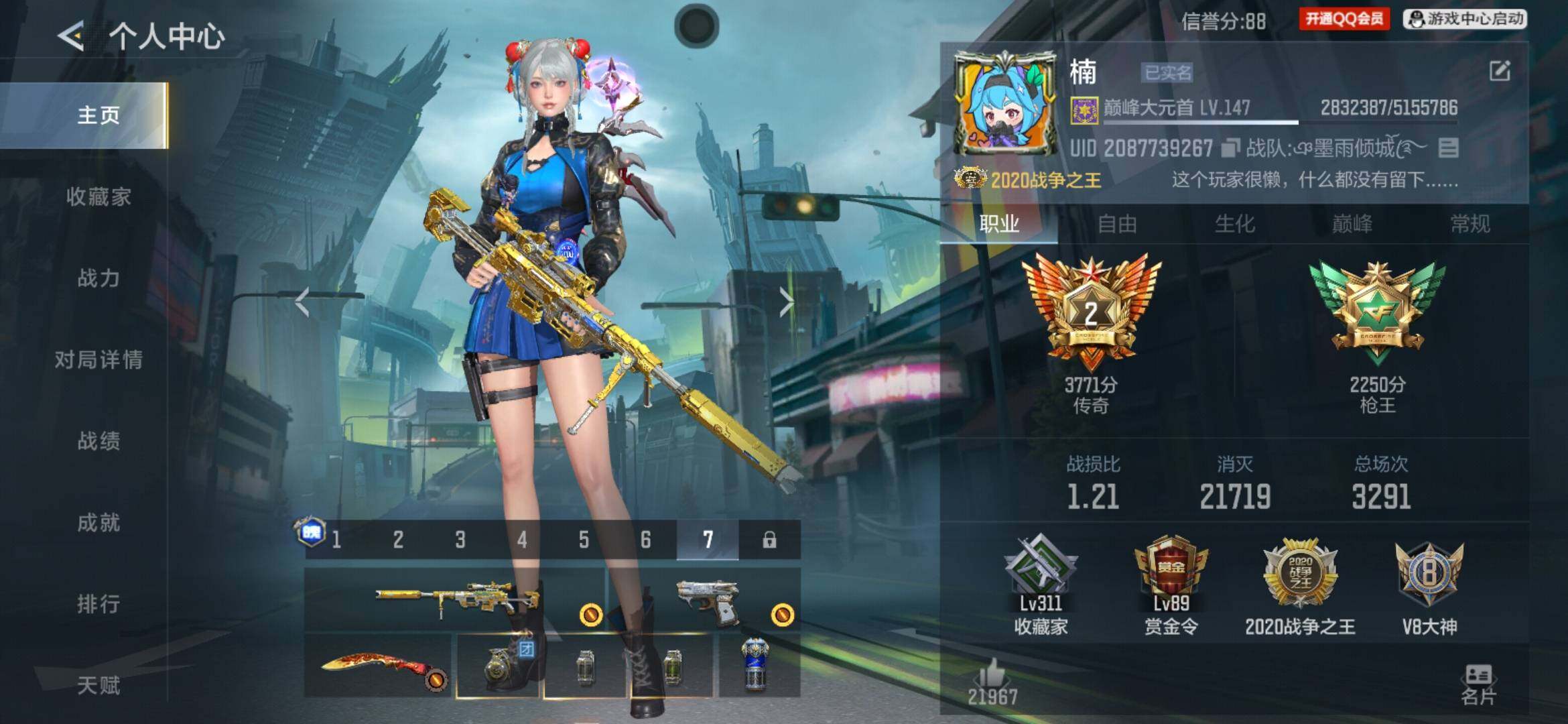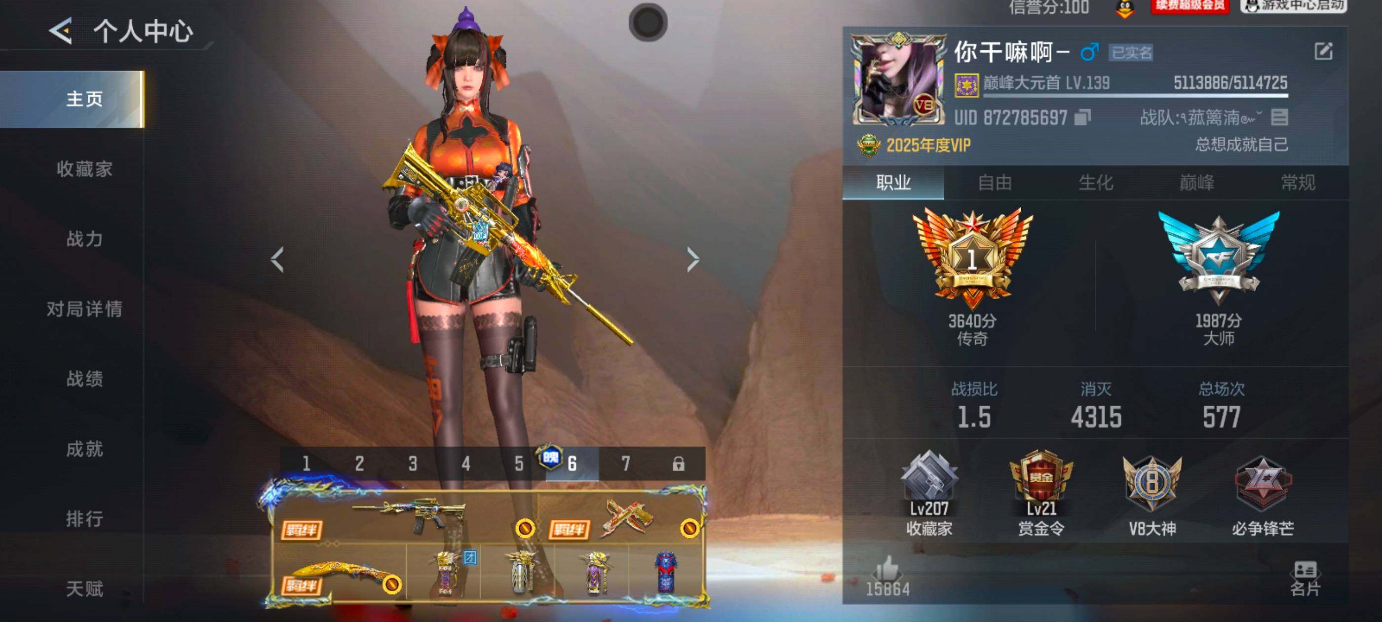 VIP等级:V8,V武器数量:664,V角色数量:18,V总数量:349,王者武器数:34,万化数量:784