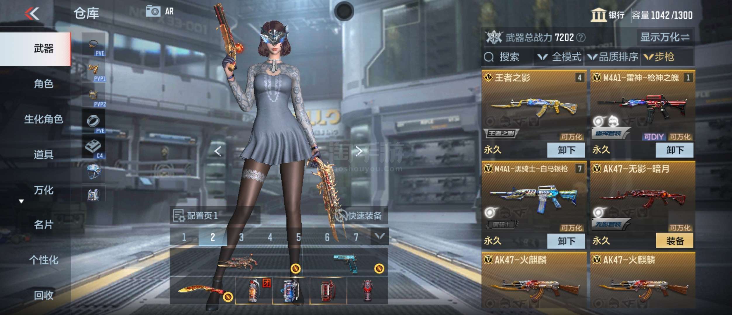 三国武器 王者武器 不少AK47-无影-暗月,M4A1-仲达-白露,AK47-奉先-无双,王者之武-HeartShot,王者之翼-HeartShot,王者之心-,充了2个多的w三国武器 王者武器 不少