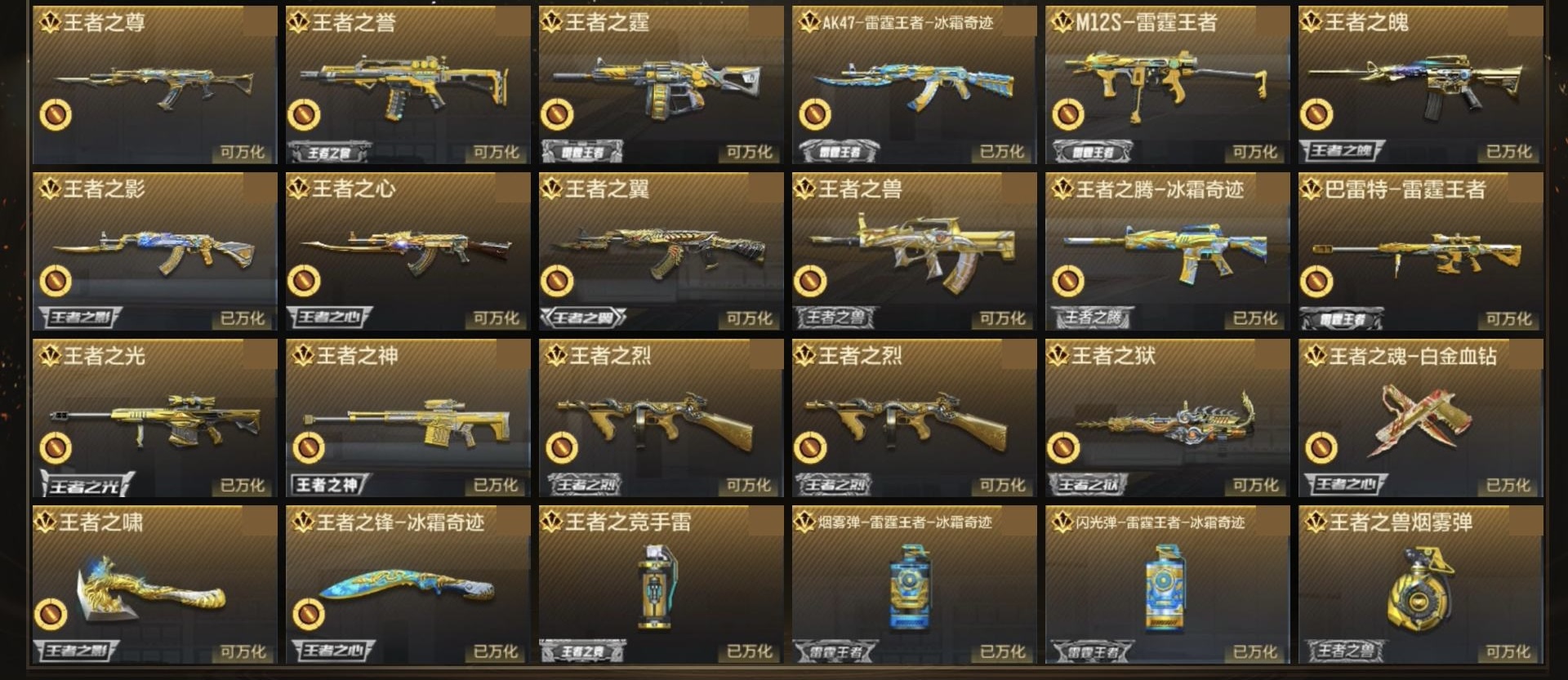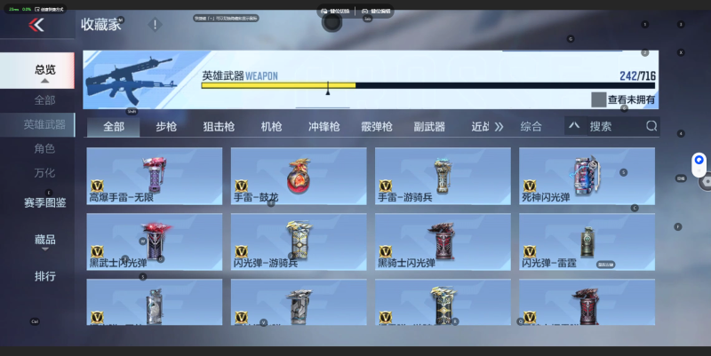 V2 1王者武器 125英雄武器 4英雄角色 257万化 专家晴舞毁灭套游骑兵手雷套死神手雷套
