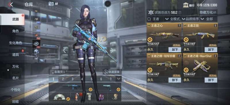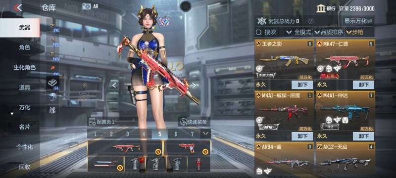 穿越火线:枪战王者【安卓QQ】AK奉先全套,AWM游骑兵,两把英雄级COP,王心,王影,有一个王者之魄拉丝皮肤,有一个王者幻神冰皮