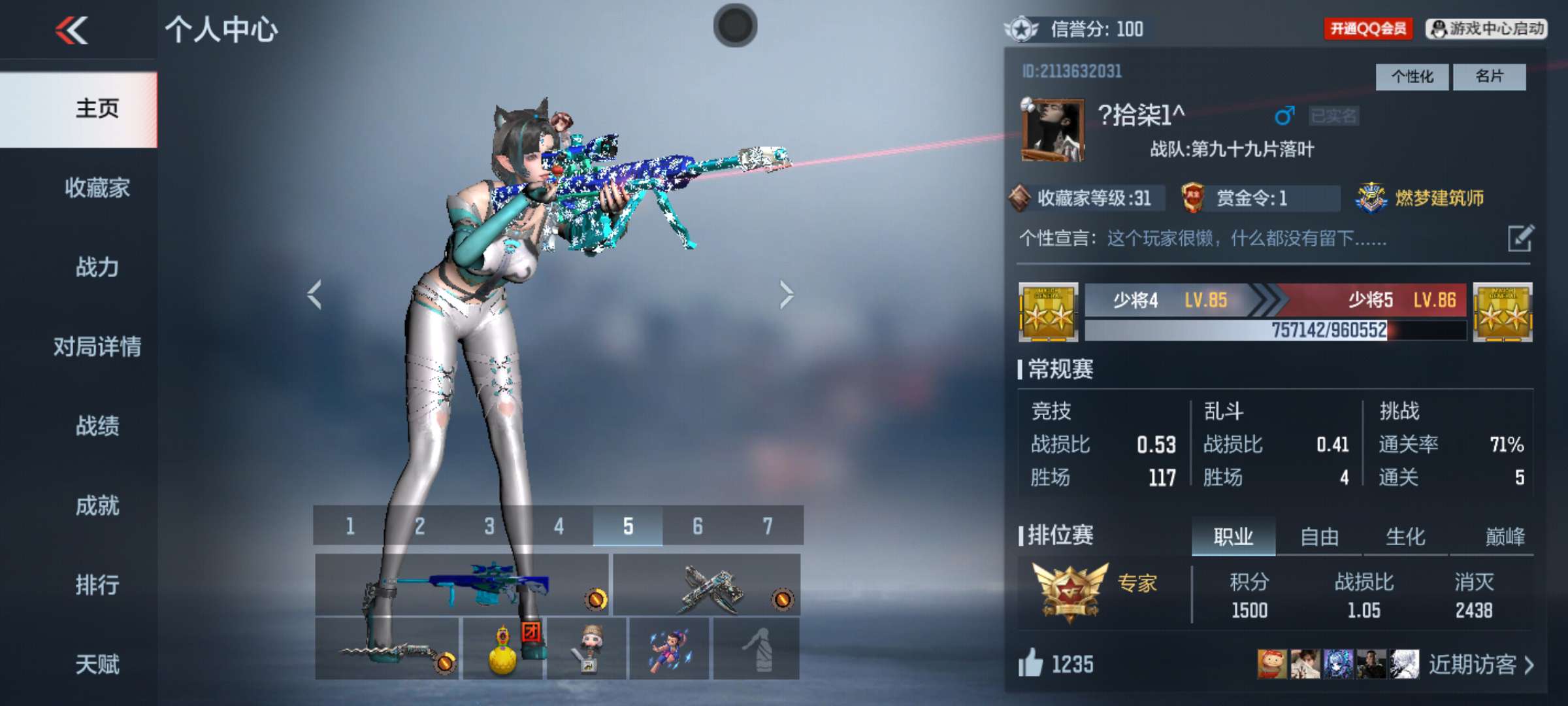 皮肤多碎片多 不重复的有219V 重复的有300英雄武器防闪角色4个钻石3w适合新手玩家可小刀