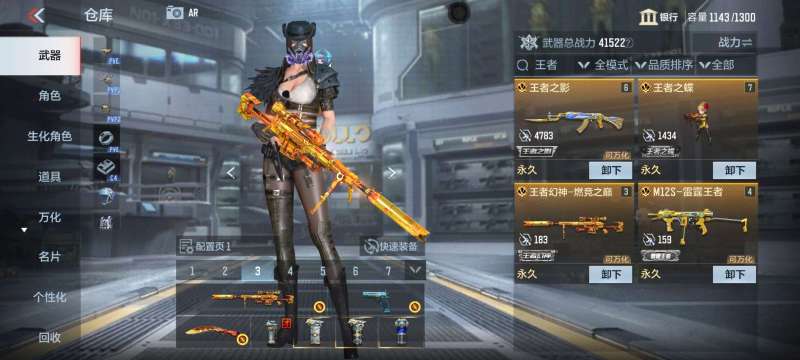 苹果QQ,v10顶配号,6王锋(3紫电皮),12把顶尖强度的王者武器,还有很多辅瞄枪,都是有皮肤的