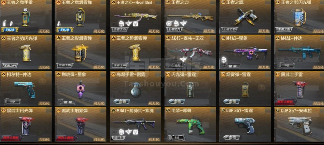 ak,m4,awm三把游骑兵妙才,仲达手枪玩到关服,王影光明神,云舞等强力排位武器,诚心卖