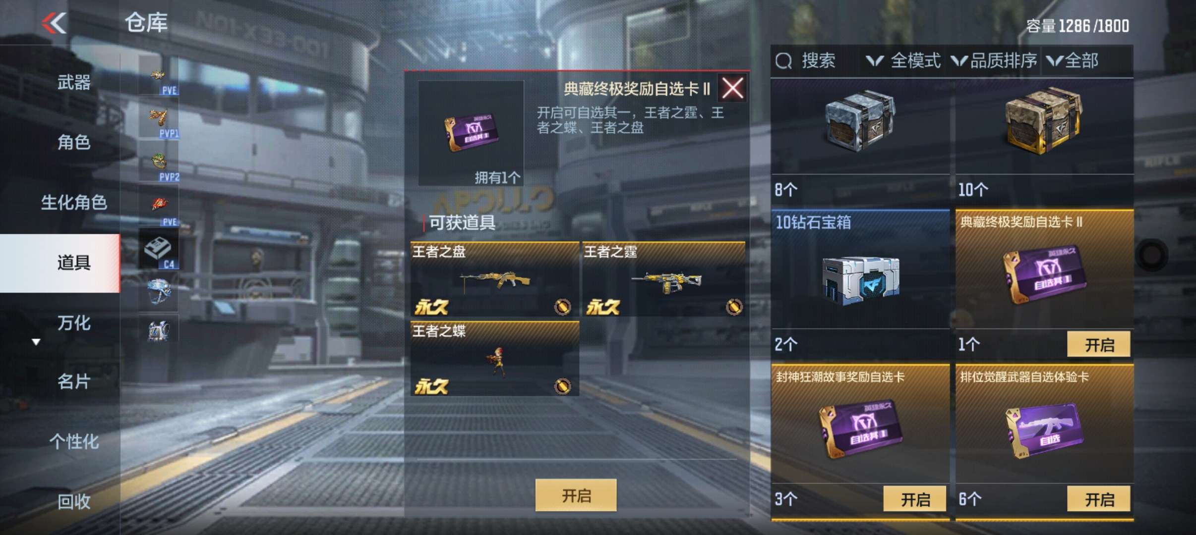 穿越火线:枪战王者【安卓QQ】王心王神王狱。典藏自选卡一张。妙才57碎片。