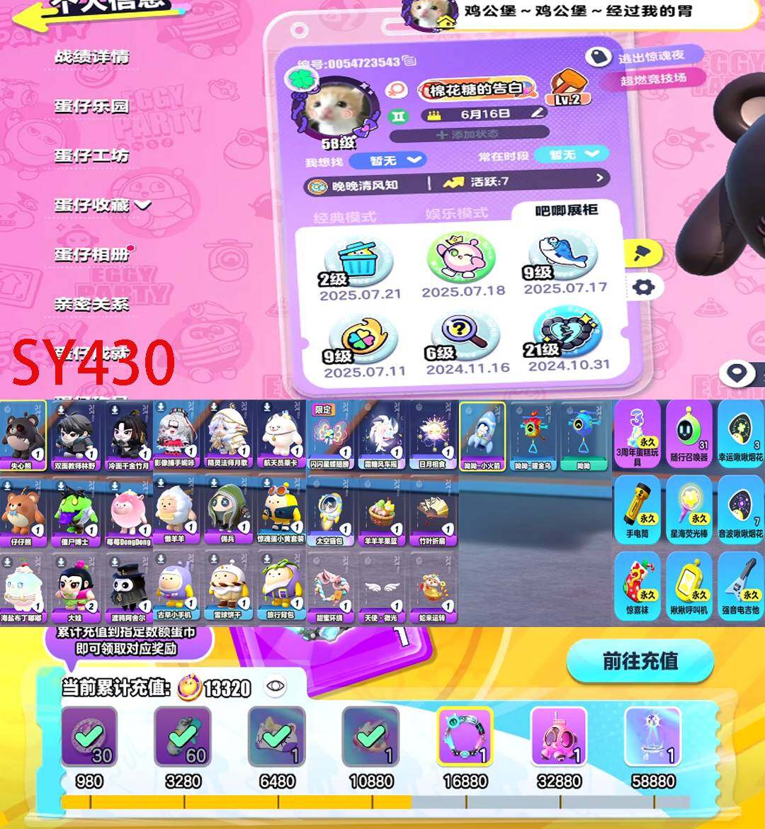 233乐园里的蛋仔派对里面氪了400多。地铁跑酷里也氪了好几百便宜卖。还有其他游戏等。买了发账号密码