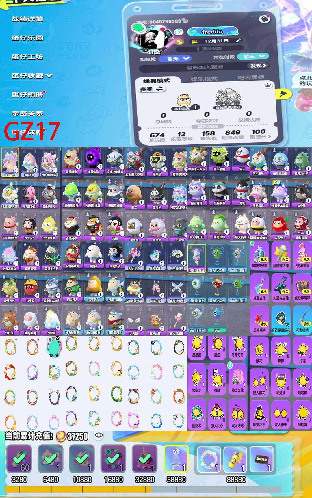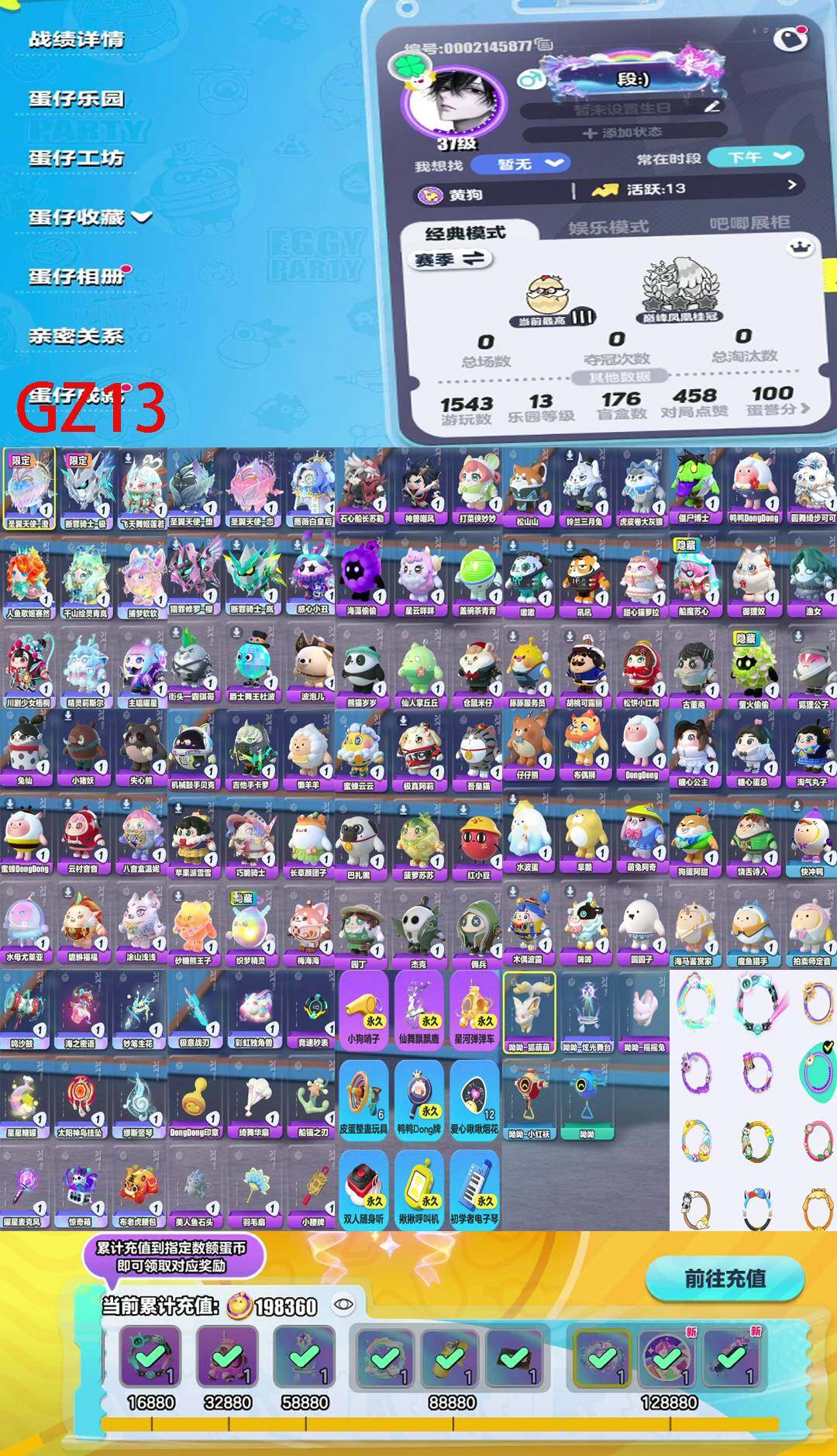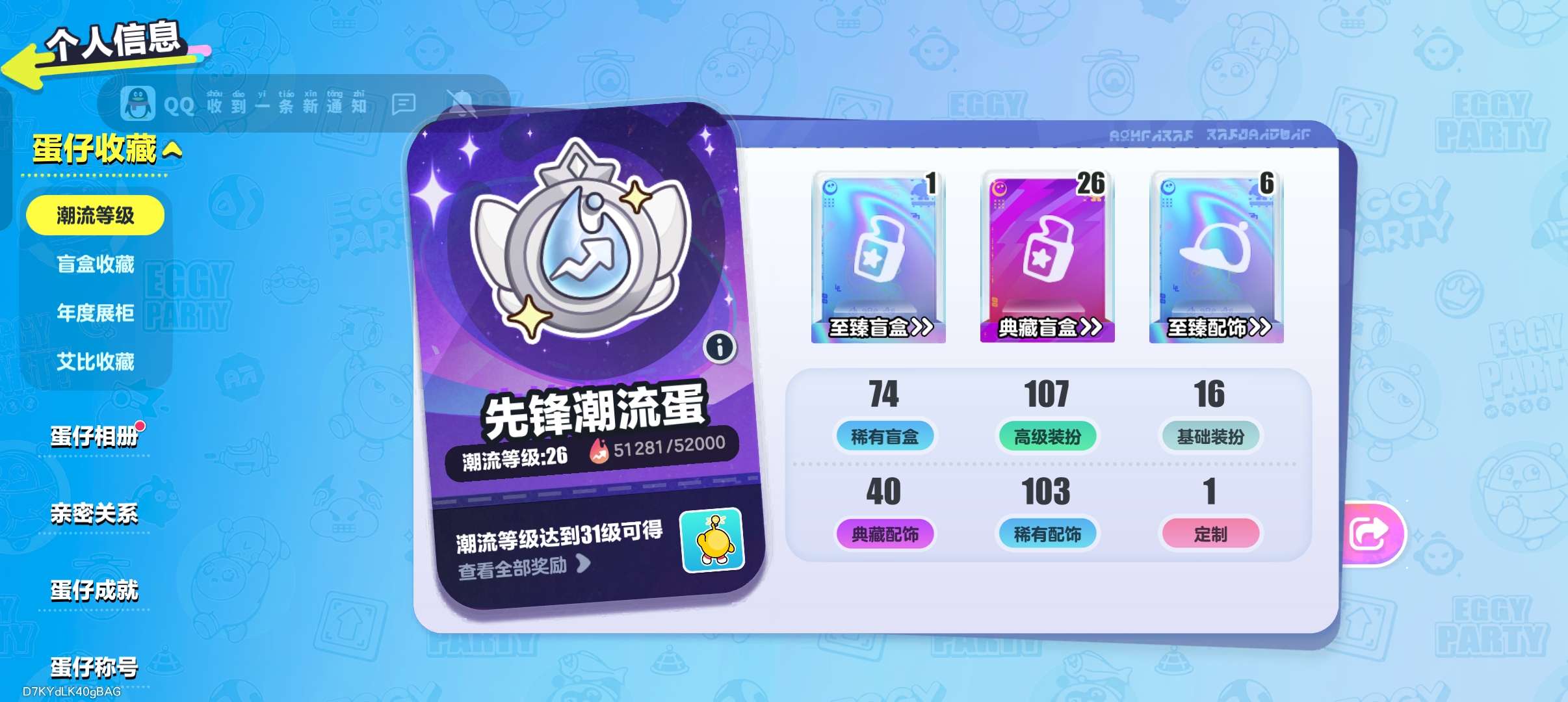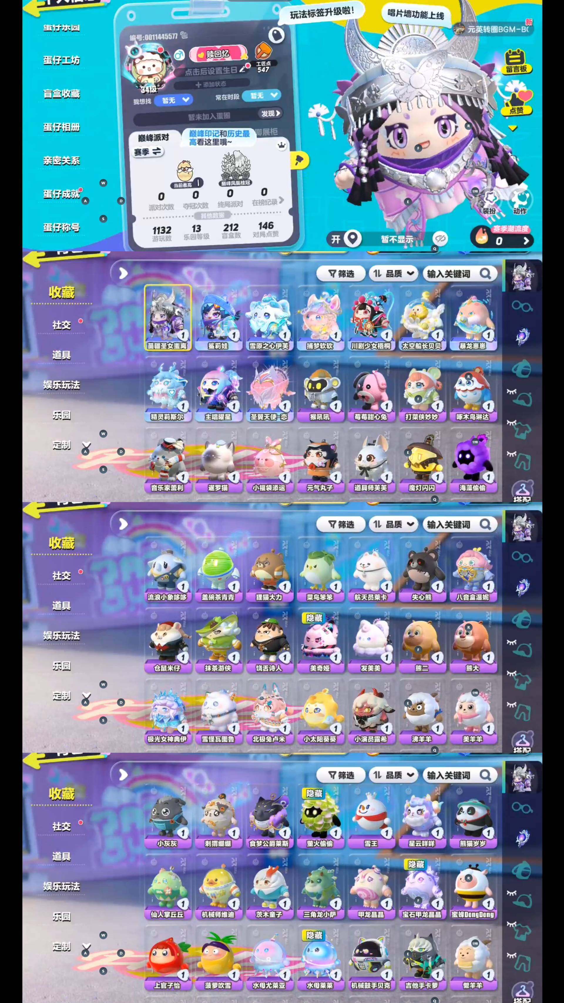 yydz208 蛋仔派对安卓渠道 10至臻72紫 主唱曜星 苗疆圣女蚩离 雪原