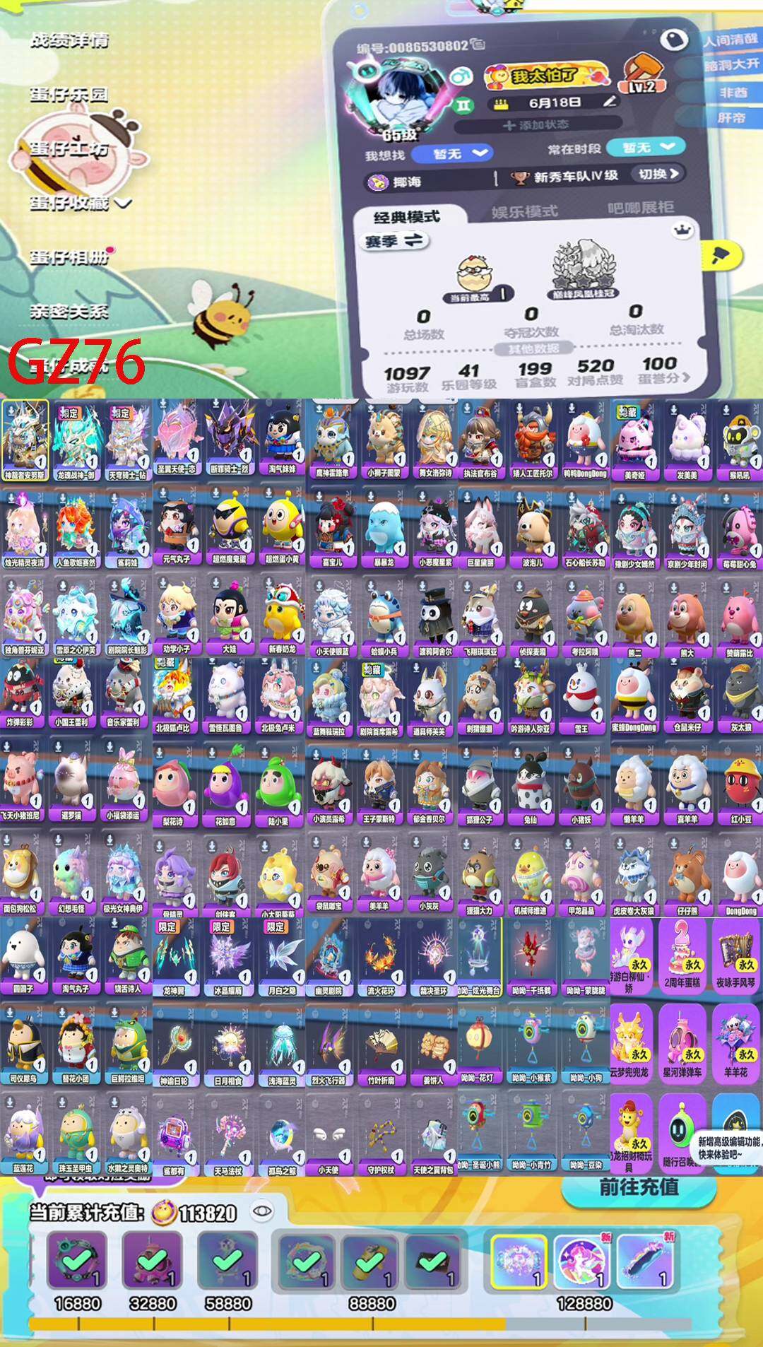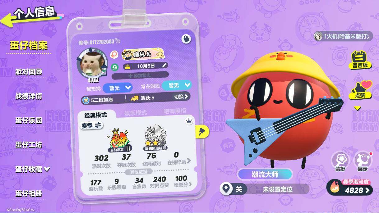 蛋仔派对vivo号潮流度82453至臻大天使白皇后双东东羊懒羊羊红小豆星河弹弹车凤凰三7印记可换绑