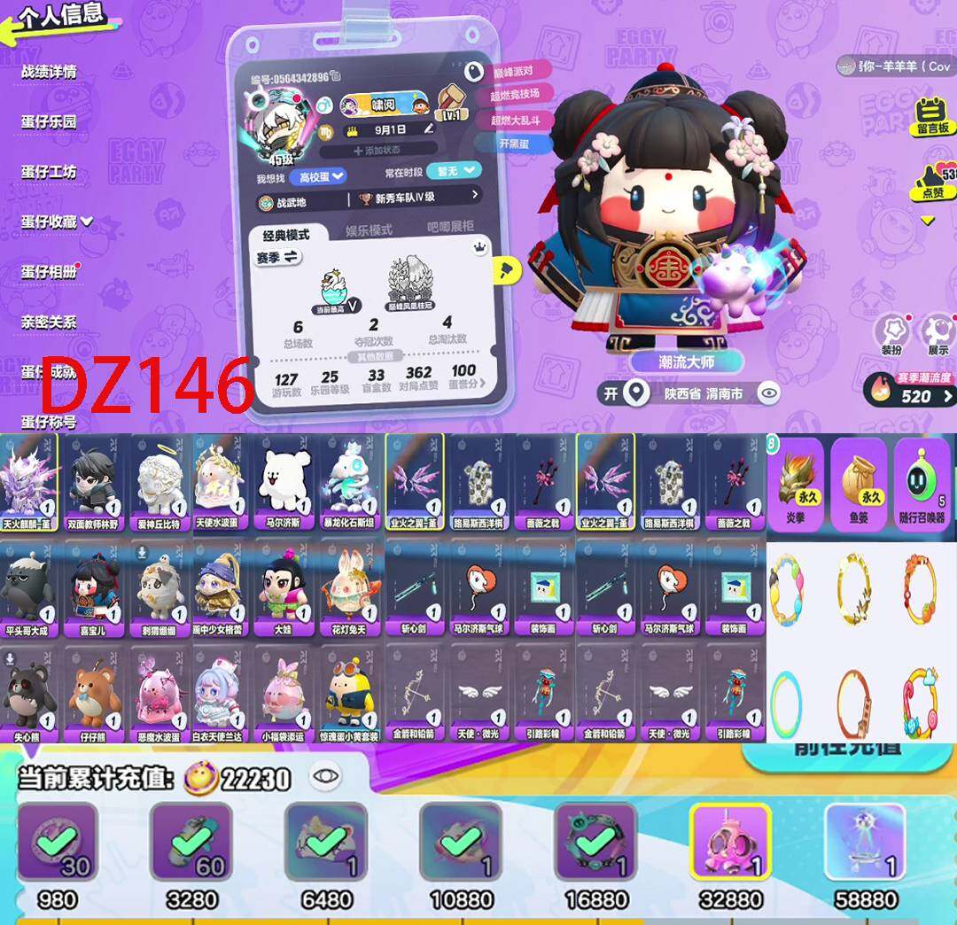 蛋仔派对3至臻48典藏号|标价出皮肤多,稀有度高,典藏号,喜欢蛋仔的可以看看~