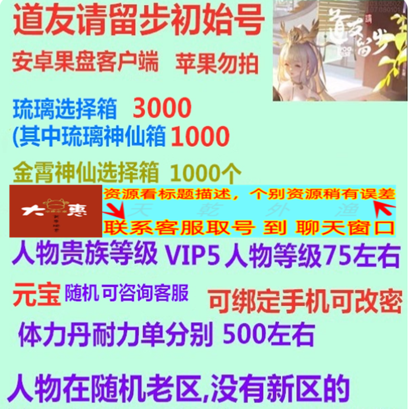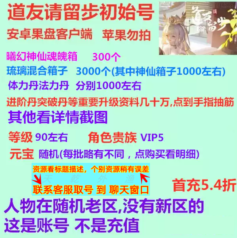 安卓果盘服主图描述:21个自选金宵神仙20个赤魇11个琉璃神仙+25万元宝+9000体力丹+10个紫