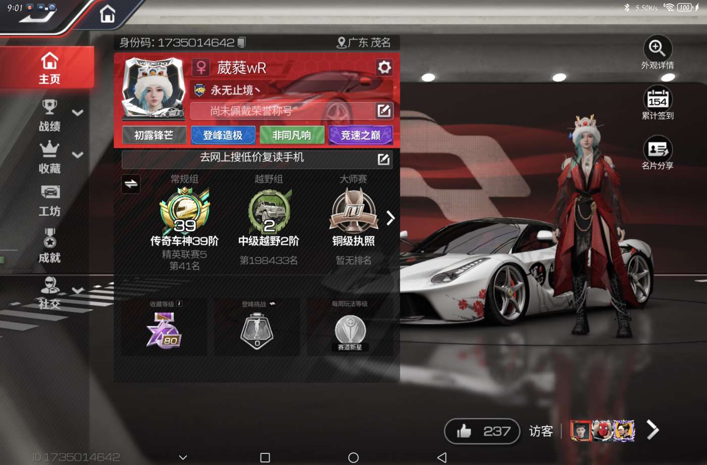 极品老号,满级车巨多,月卡155天,4张周卡已开,满阶珍藏典藏,2048强账号
