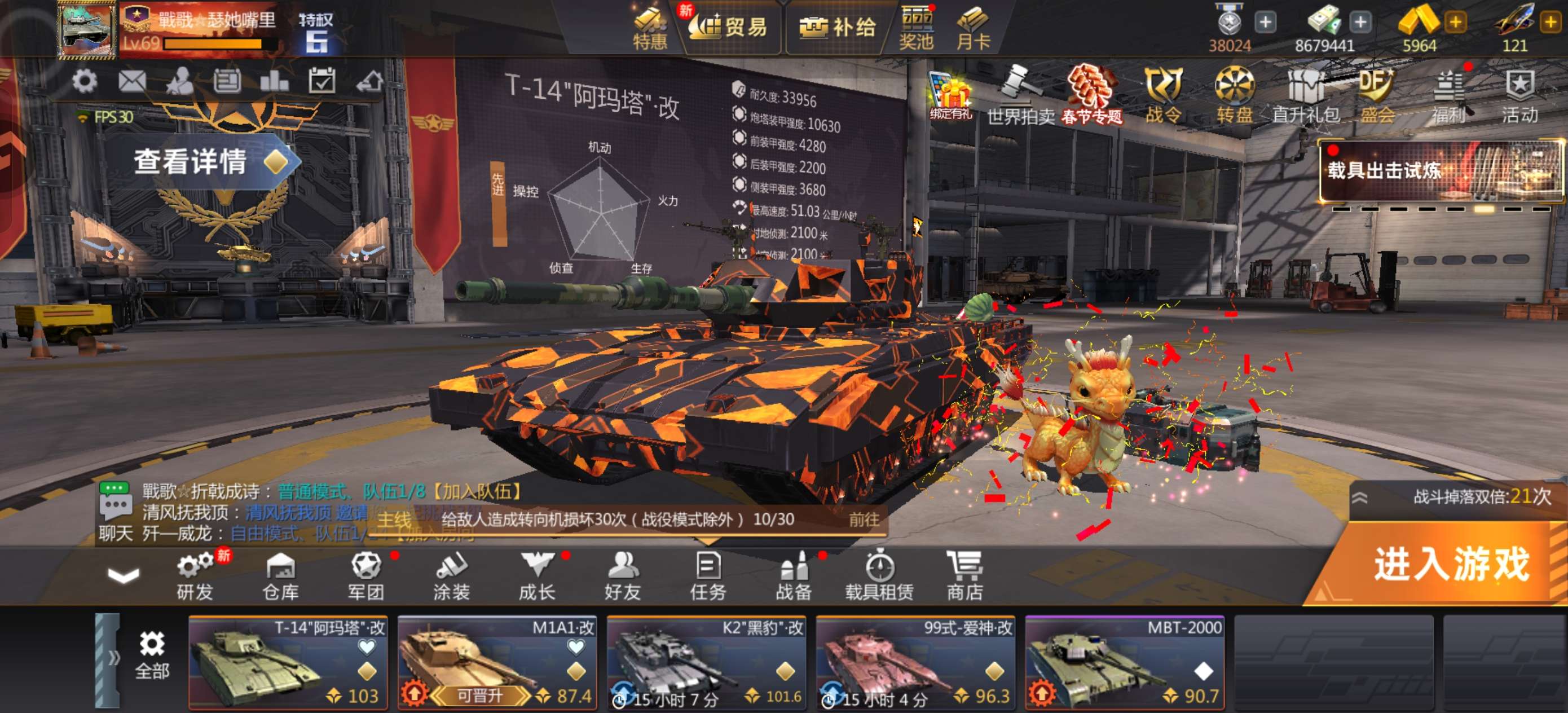 准特九,燃烧套眼车,伤害高,军神武器和战神甲,有冰雪世界,飘香,天问,棉花糖,小老虎和觅心之战