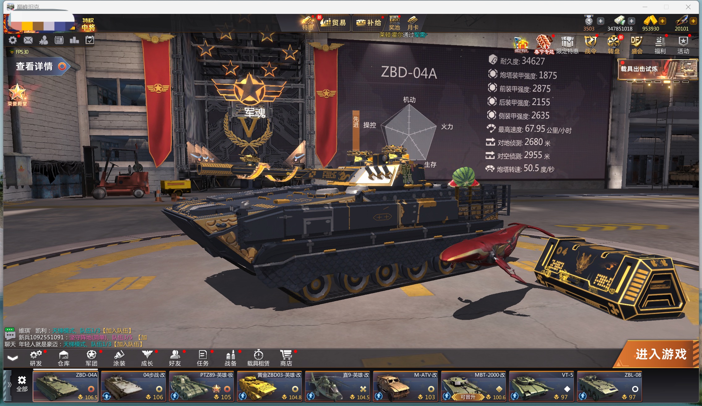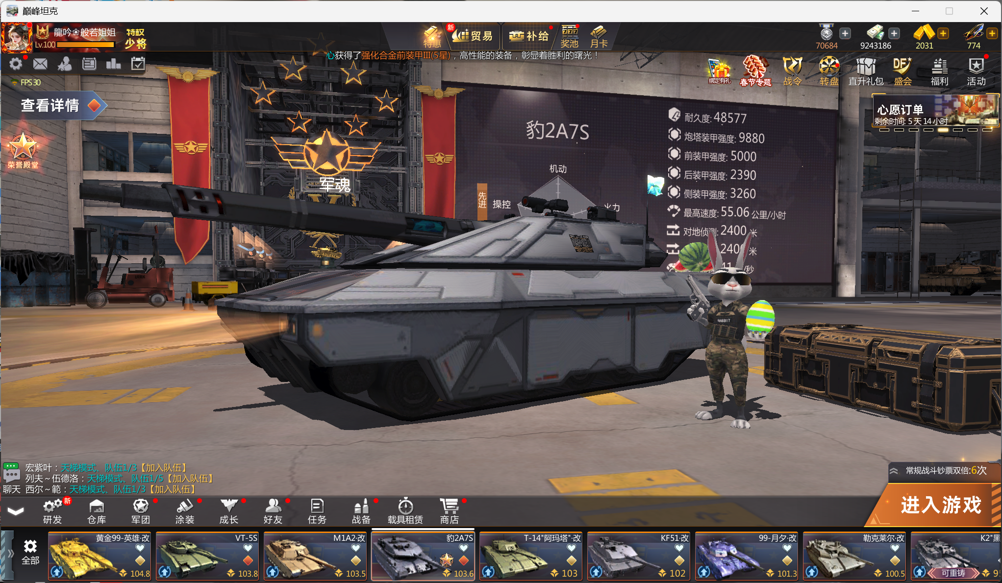 QQ大厅坦克装甲双系8顶指VT5S,K2S,KF51涂装技能全部刷好两套弹药箱个技能全满无人机已搞好