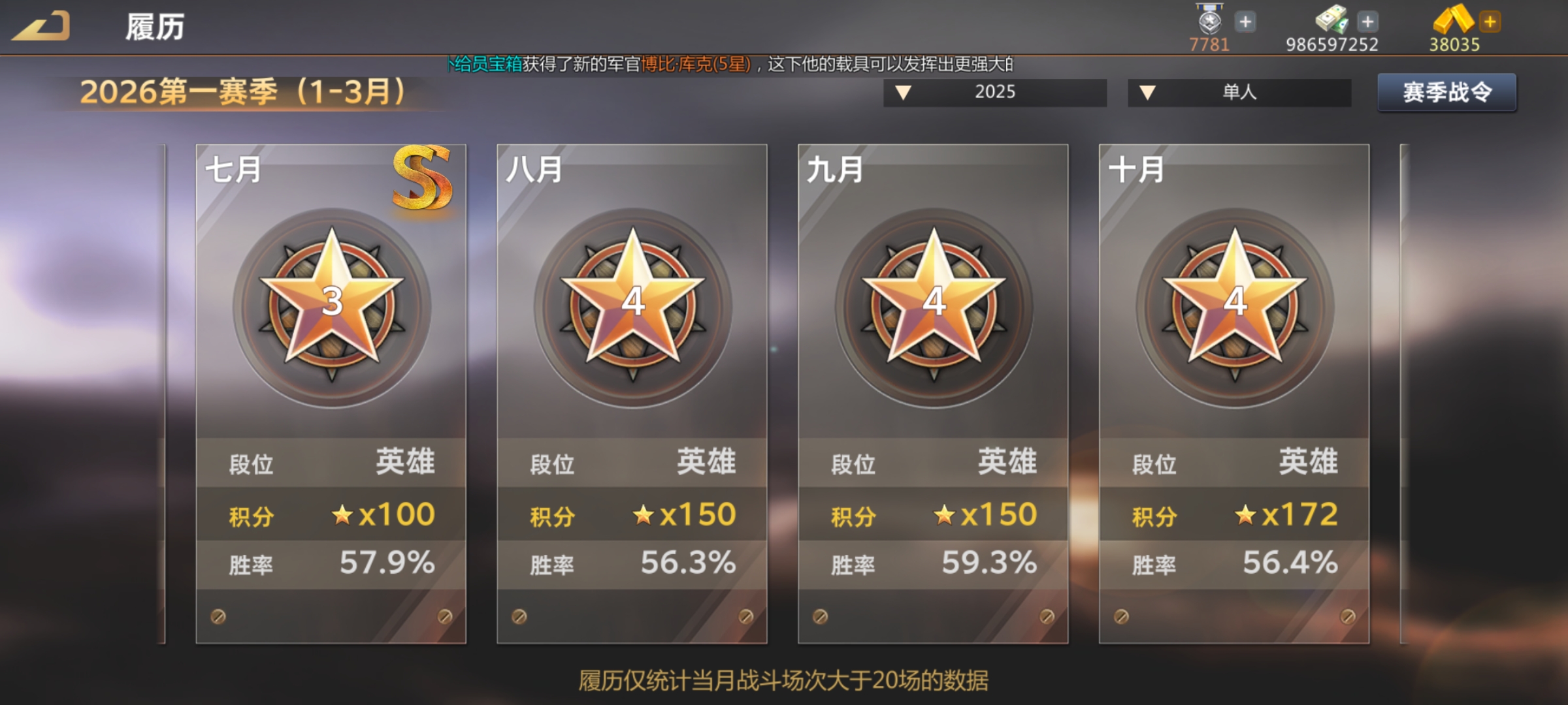 3875顶级天梯百星号,6顶指,月月双英雄,99英雄极51,K1都顶级,蓝图八星,六个珍贵军魂