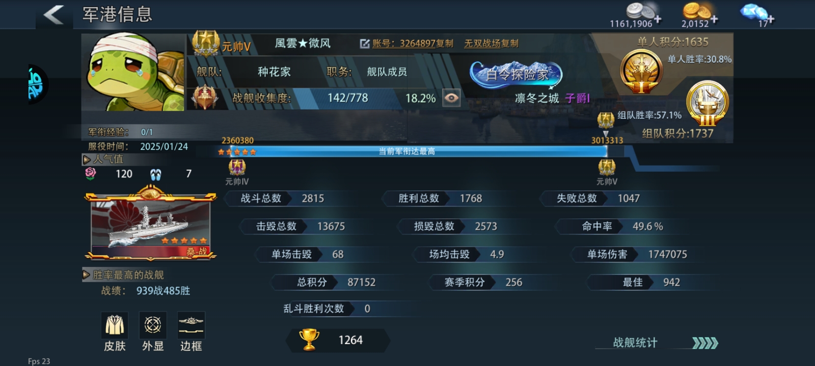 退坑出5星肥肥21.5万战力战列号所有都能换绑