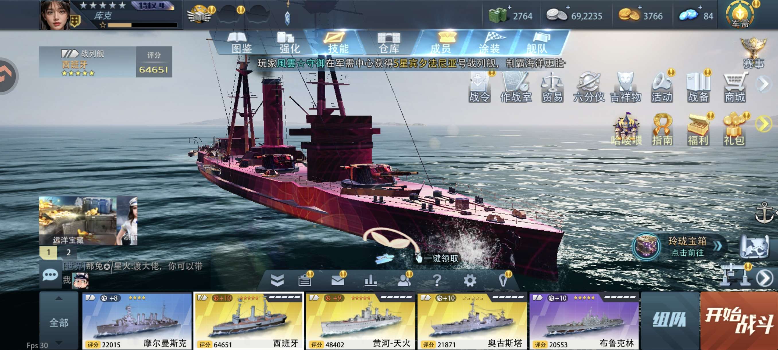 6.4w战力西班牙号,黄河天火马上5w,带永久福利勋章,贸易正常