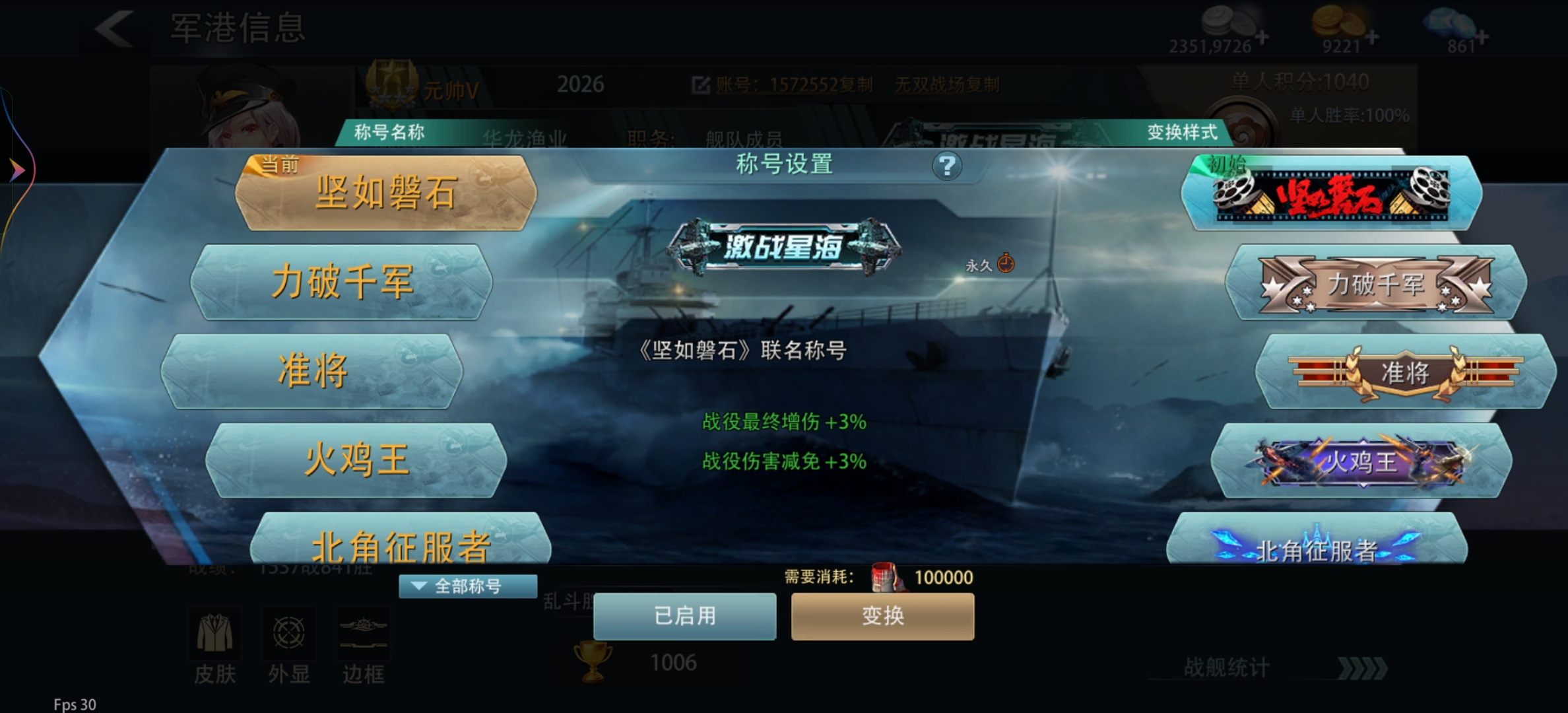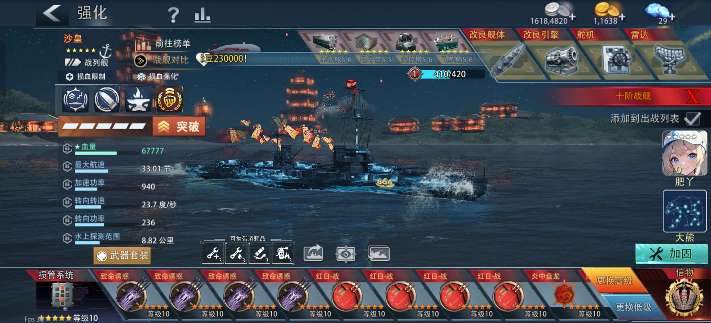 喜欢玩战列舰的看过来,大元帅,顶级战列舰21.6万多战力的150合适就拿走,