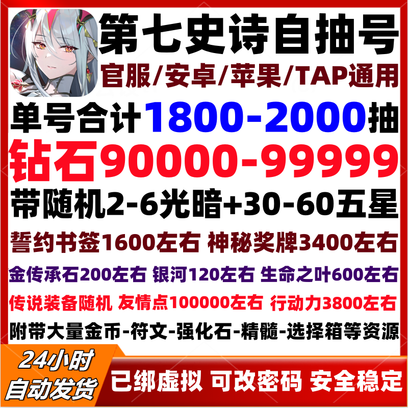 第七史诗初始自抽号epic7官服2万钻石五星2光暗自选组合成品账号