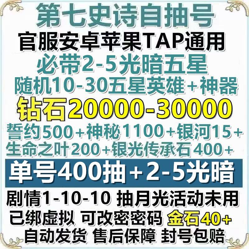 ❤️8+15五星英雄 5-10五星神器❤️单号280-240抽❤️7500+钻石 500+誓约签❤️