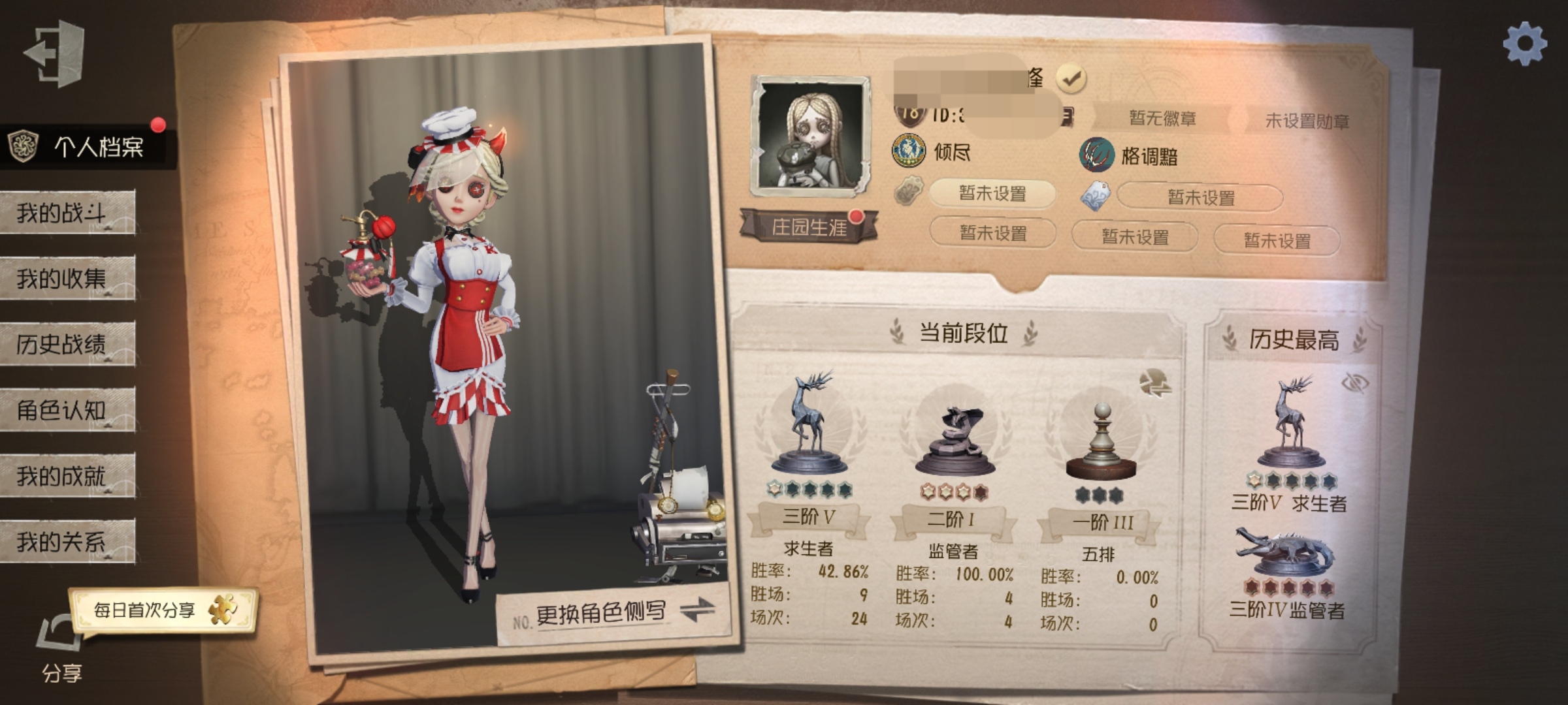 调香和机械师中情,夫人和园丁小情,有虚妄挂件,回声金紫比较多 四款全套电竞皮 累充六千+