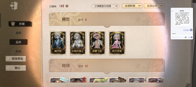 第五人格 安卓OPPO渠道不可换绑,时光代理人联动全套服装,有几个限定金,有个沉默宫殿,紫薯四千多