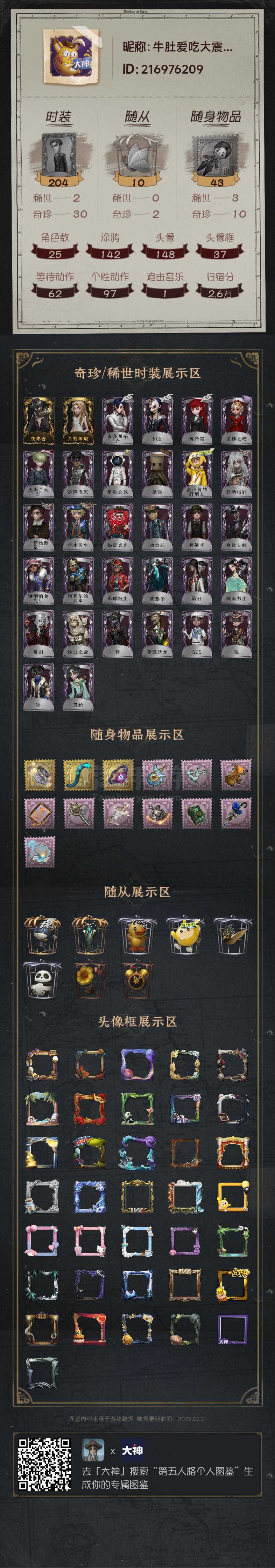 官服 第五人格佣兵奇珍柜,舞女西尔菲德,心理学家长夜,14000紫薯,3个稀世挂架,多个配套皮