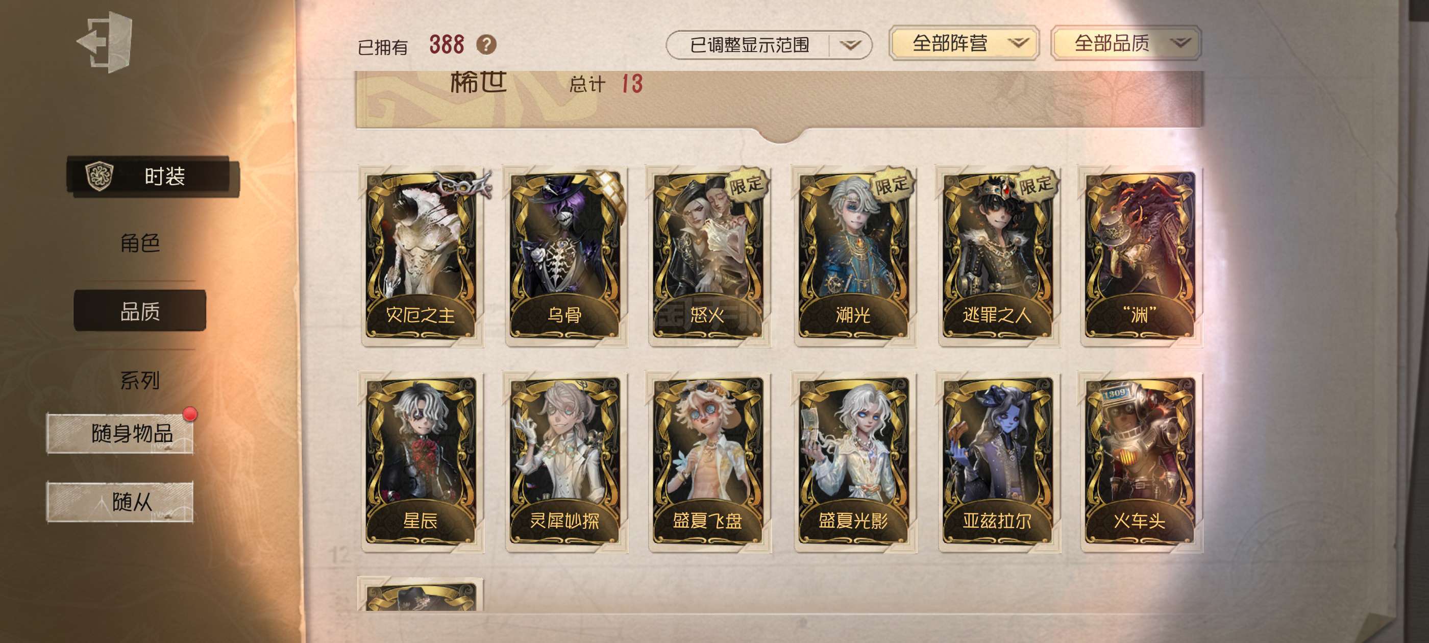 调香师一金三紫(包含两款联动)两个金挂一个紫挂红夫人应许之日紫挂一个时装总共220直挂总共51