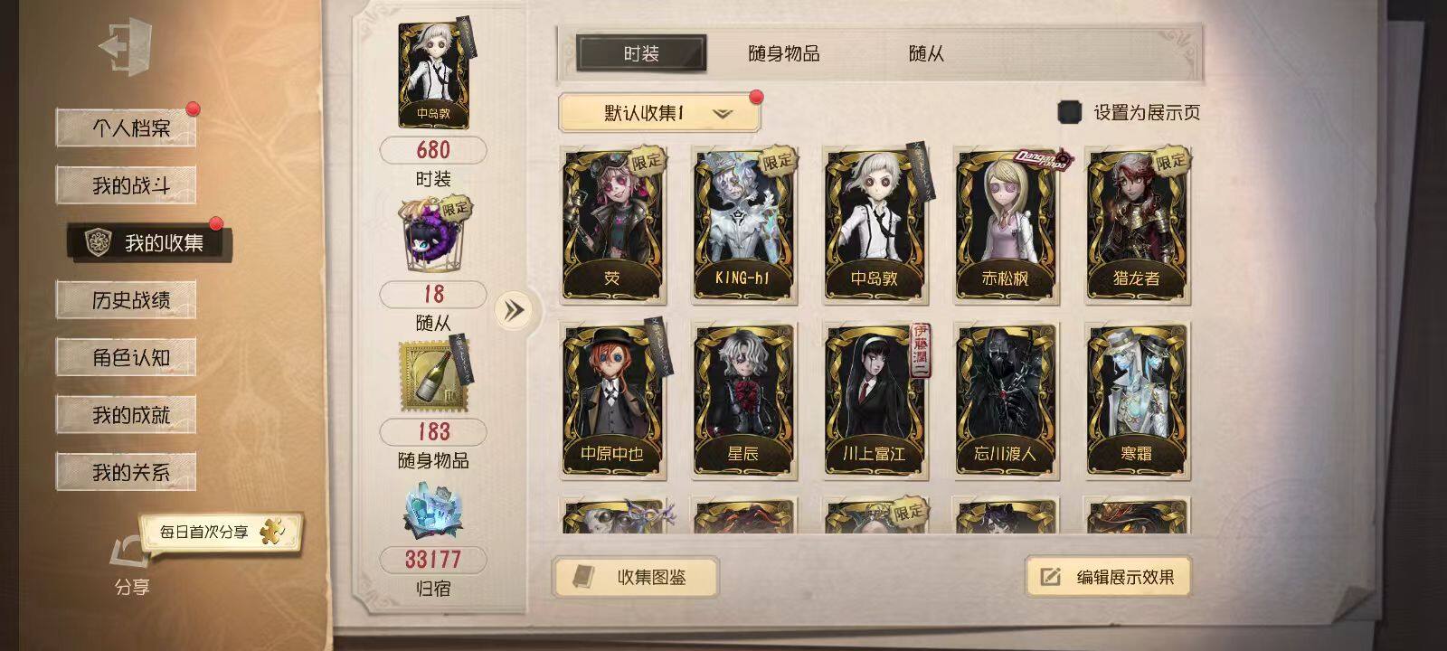 极品ld前锋,迷雾山庄,麒麟商人+金挂,时光代理人一套,duck全套,调香师虚妄挂件,中岛敦+虎尾