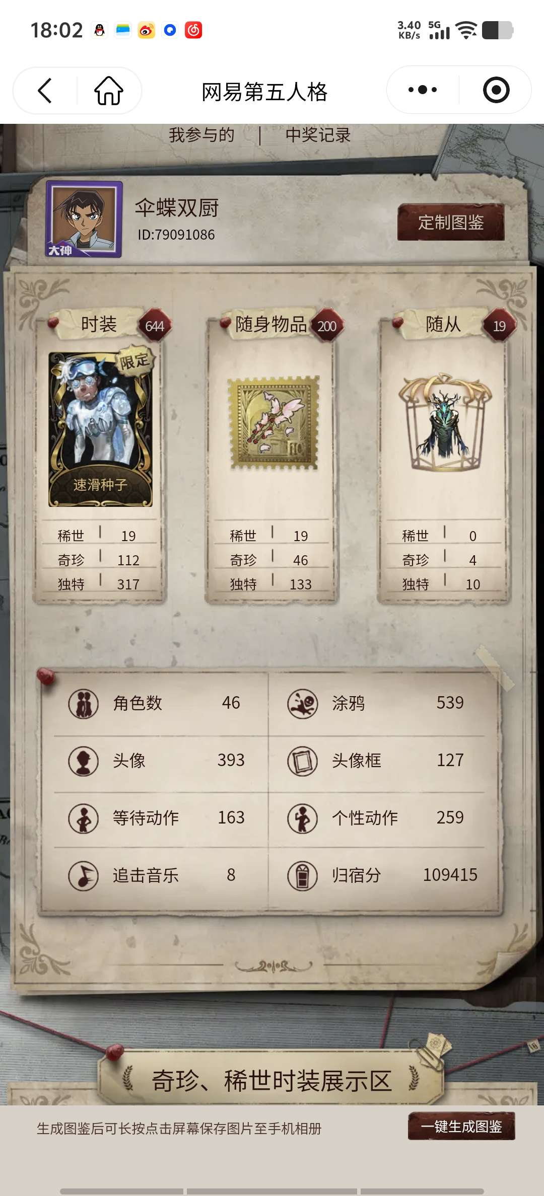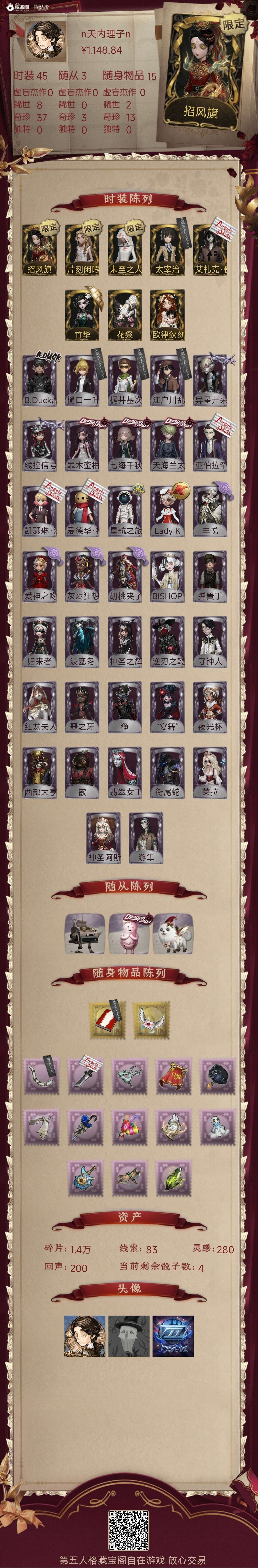 第五人格账号,充了一千二左右,可小刀,金皮紫皮多,金挂多