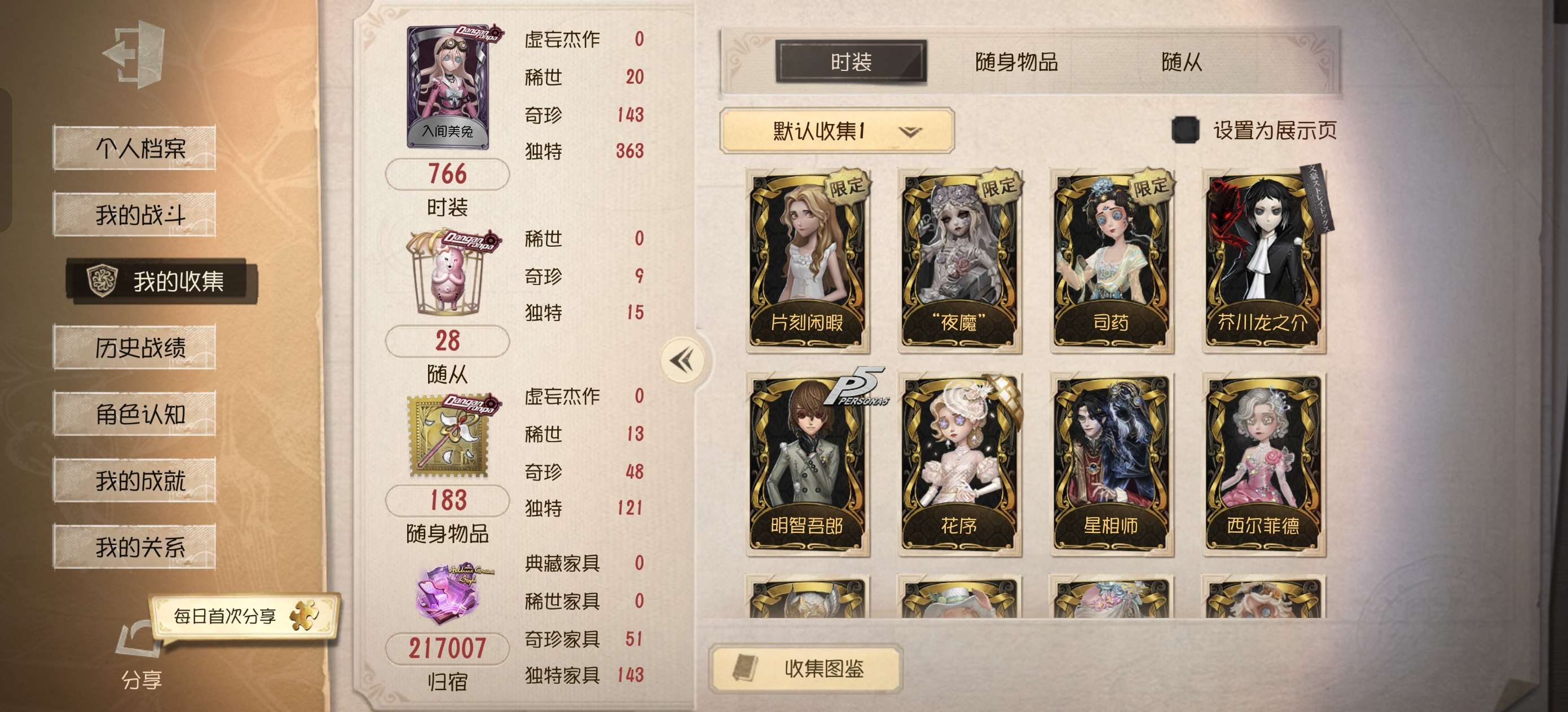 "金5 紫7角色6 等级11金皮幽灵公主 剧场主持 乌骨 片刻闲暇 别样魅力