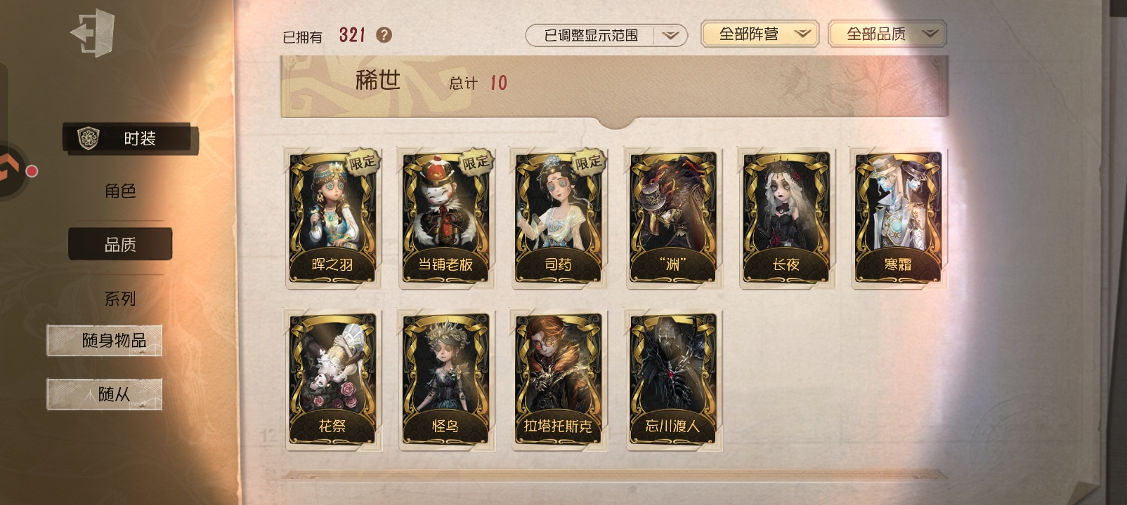 金皮:竹华 片刻闲暇 紫皮:水球救生 熄灭的太阳 迷迭香 破魔之刃