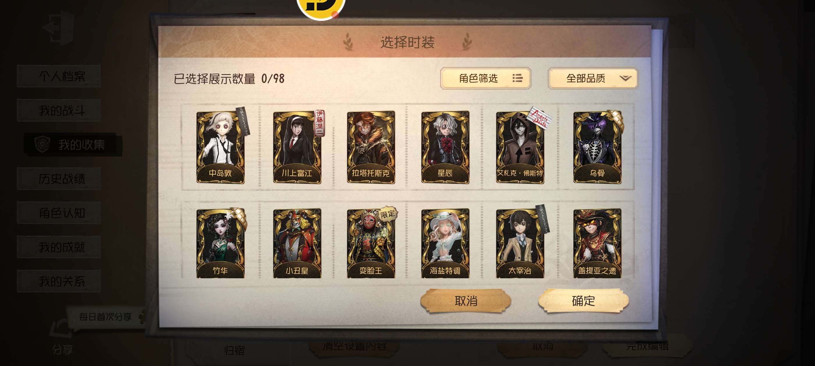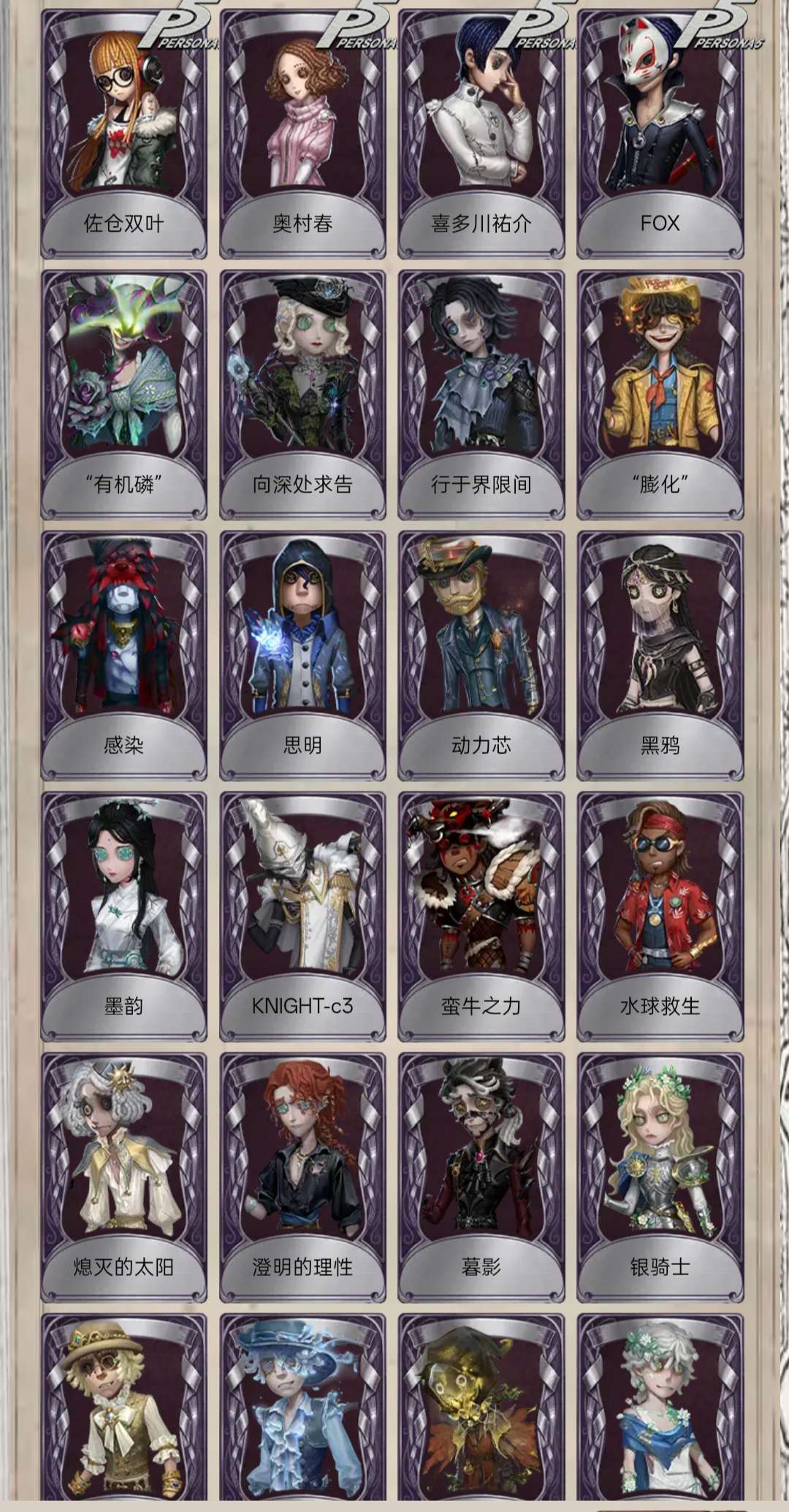 宿伞之魂小部分皮肤齐了,因为入坑晚,有一些没有