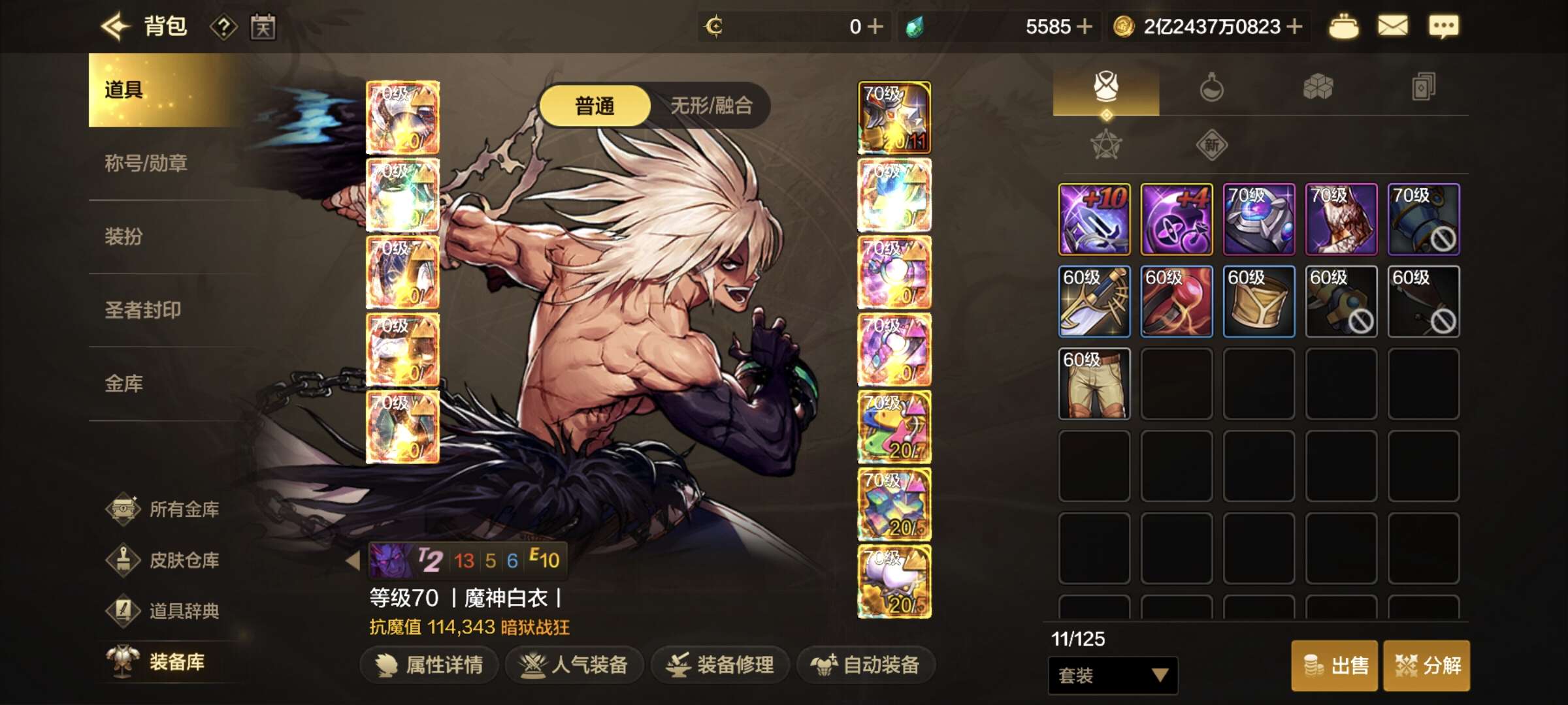 大号120420的魔抗,武器十,身上基本增幅七八,实心c送两个11w小号,2个10w以上的小号,16
