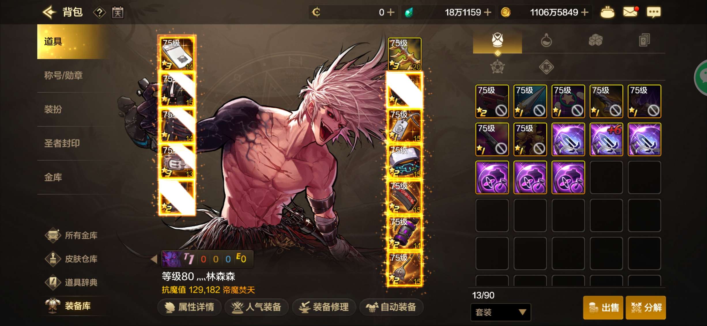 狂战士 +20武器强化 12.8W抗魔值武器增幅10全身5-6