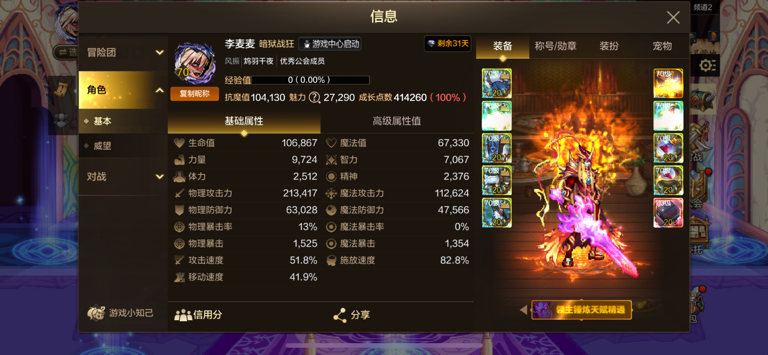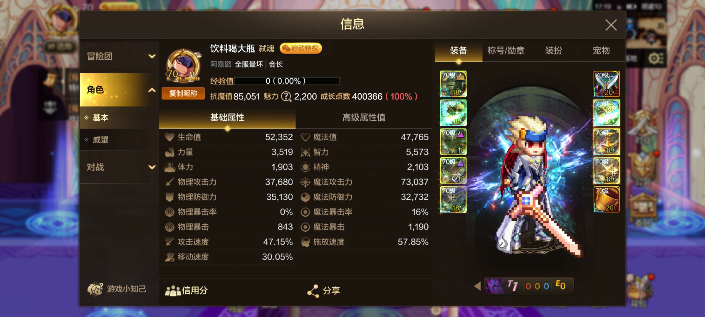 DNF手游【苹果微信】5个全身+20个毕业装备,9.0抗魔,分别:轻甲,重甲,布甲,皮甲,板甲各本命一套。