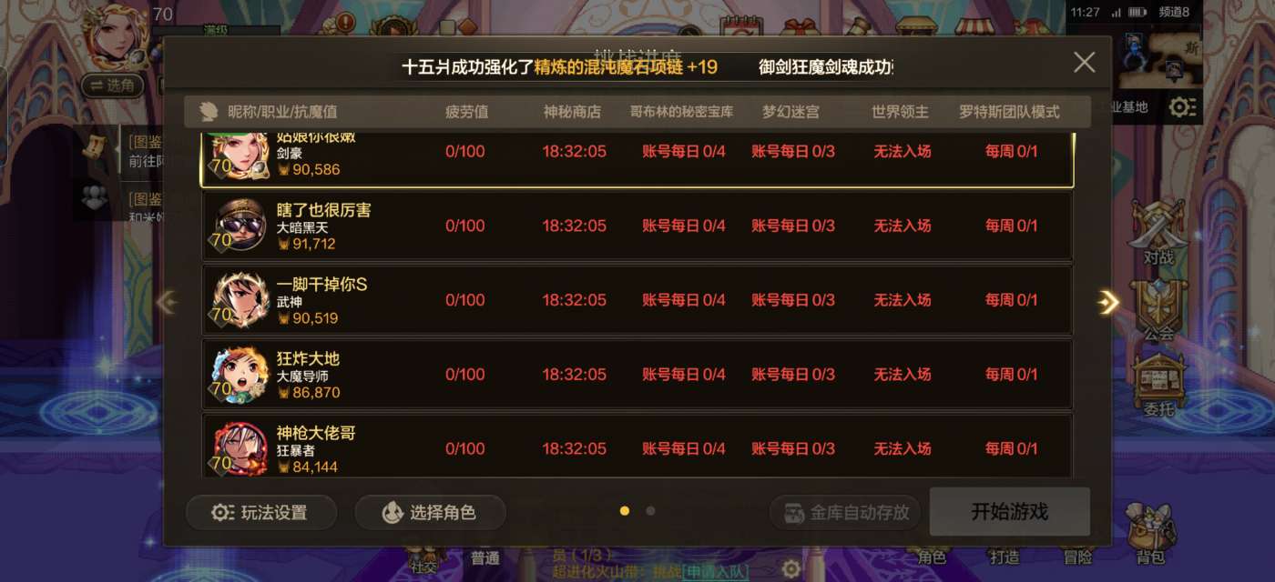 DNF手游【安卓微信】九万抗魔荒古真理,三个角色防具首饰毕业